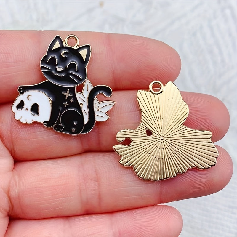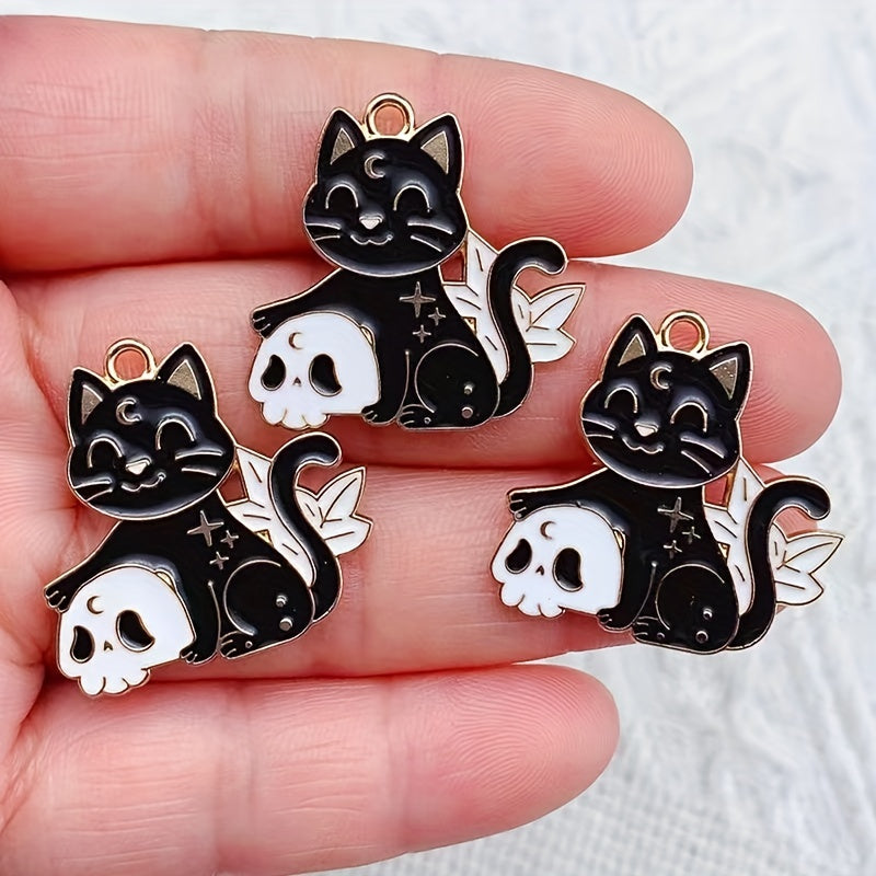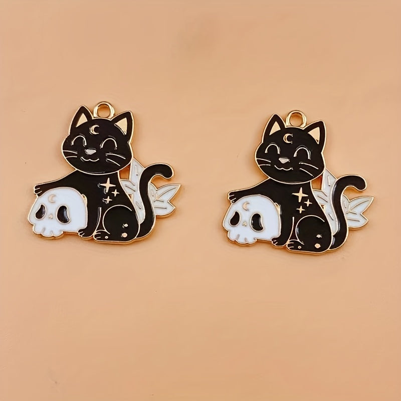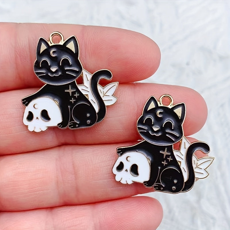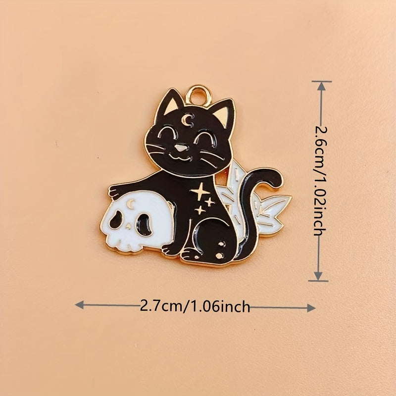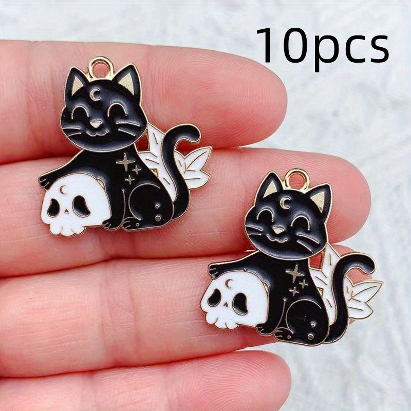 10pcs Halloween Cat & Cat Skull Charms for DIY Earrings Bracelet Necklace