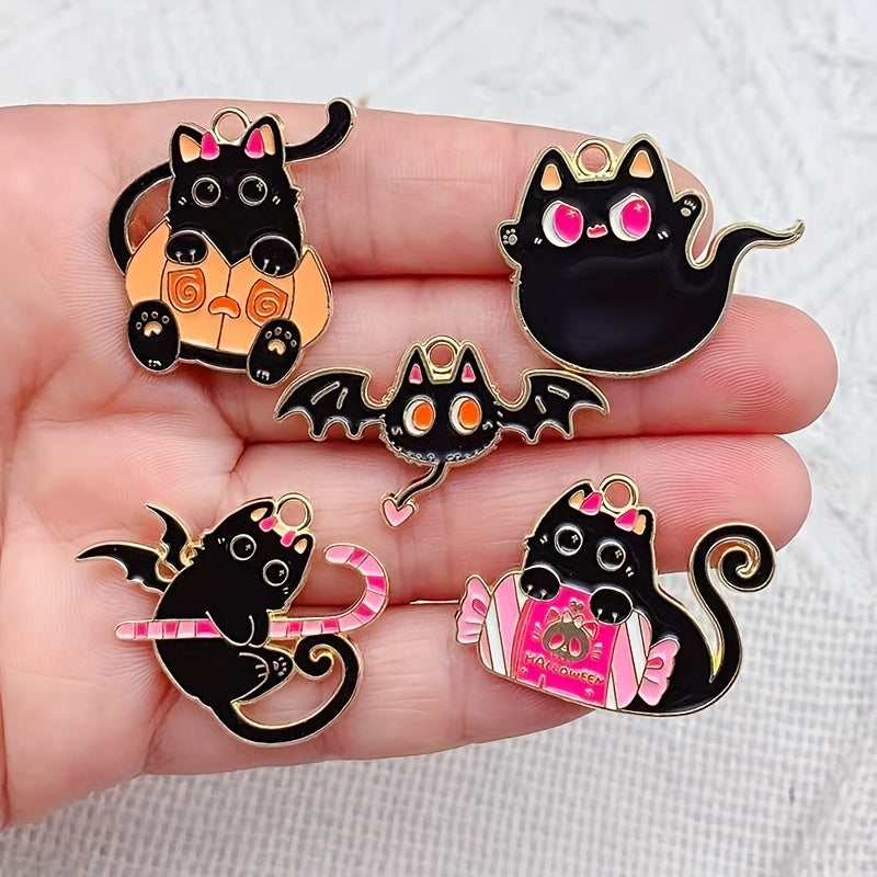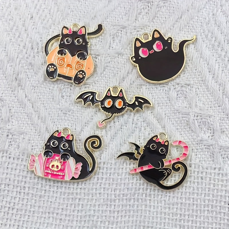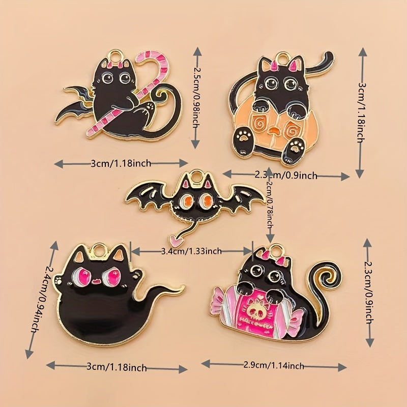 10pcs Halloween Cat Charm For Jewelry Making Enamel Pendant
