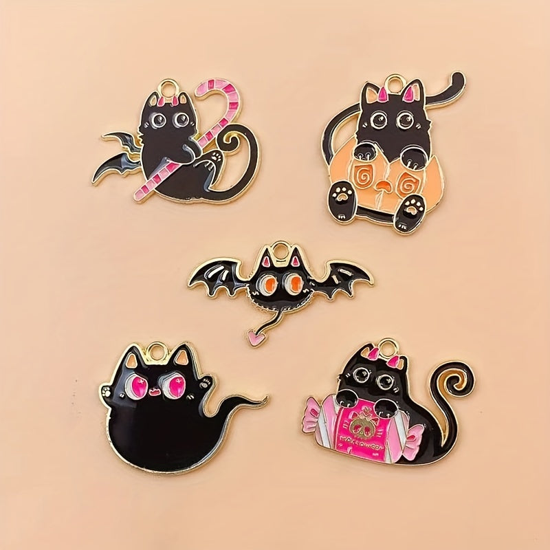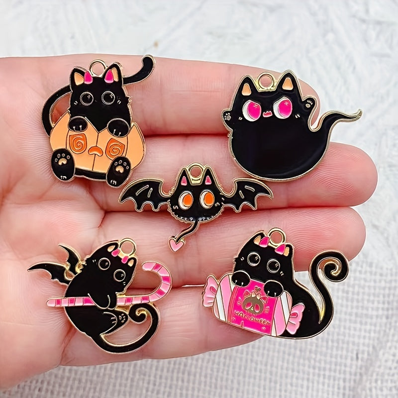 Explore the cat series with these Halloween-themed charms perfect for DIY jewelry. Add a spooky touch to earrings, bracelets, necklaces, and more!