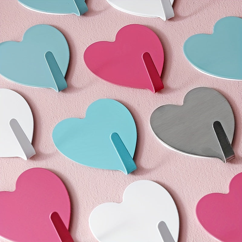 Easily organize your home with these heart-shaped wall hooks. Made of stainless steel with strong adhesive, perfect for kitchen, bathroom, and office use.