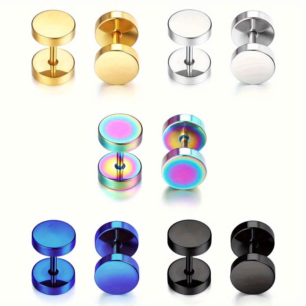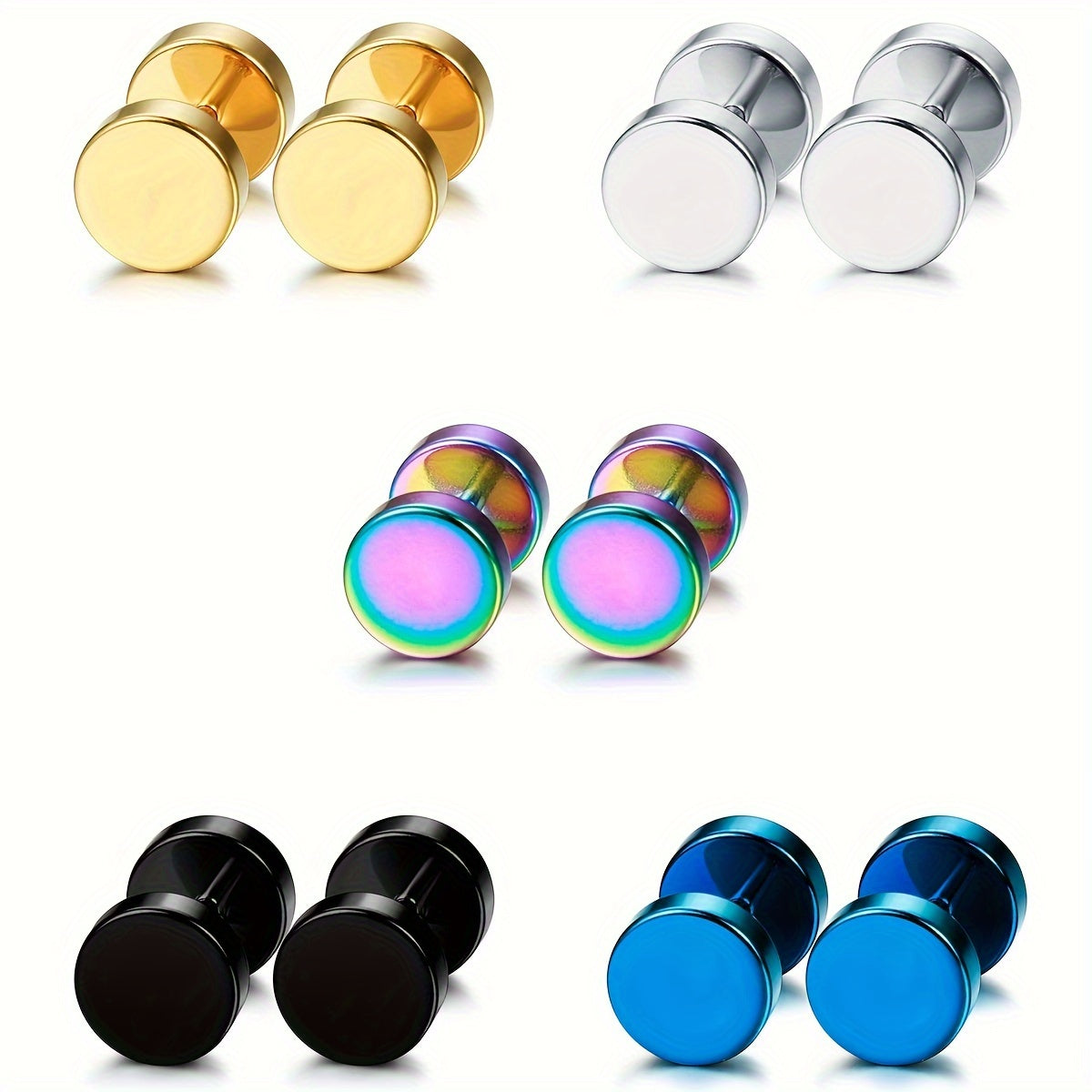 • 10pcs men's barbell earring set in silvery golden tones