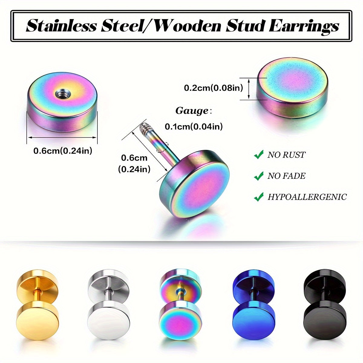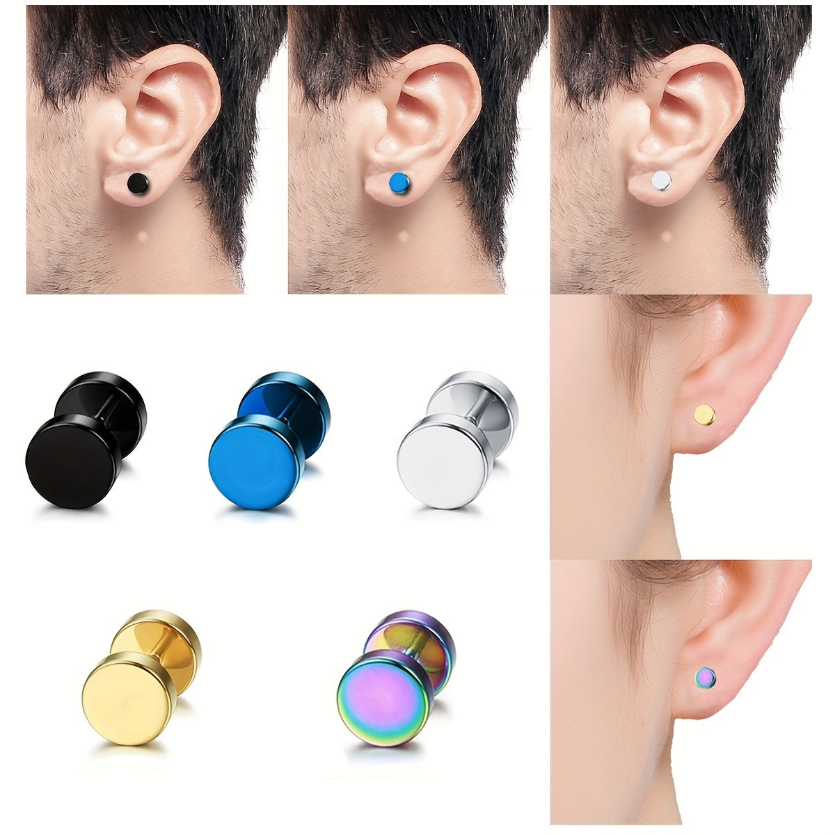 Add a touch of style to your look with this set of 10 barbell earrings in silvery golden tones. Suitable for both men and women, these earrings are ideal for any occasion and can make a great gift for a friend or loved one.