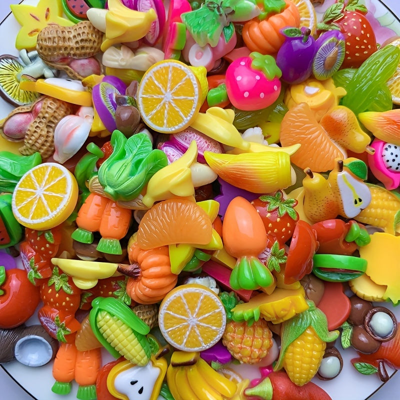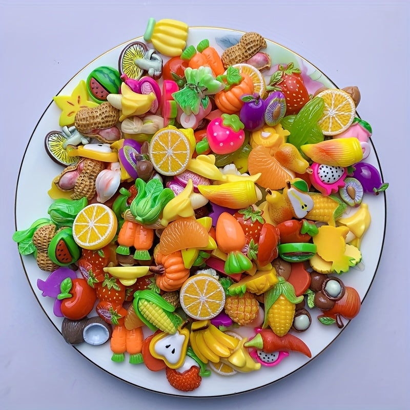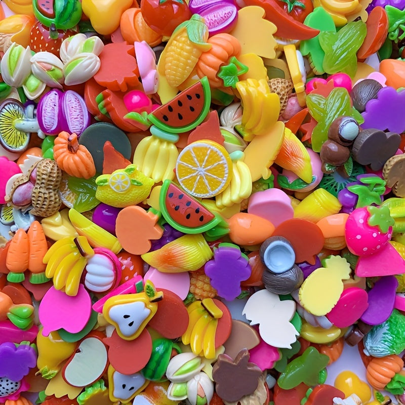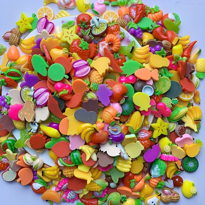 Add a pop of color and fun to your DIY projects with these cute mixed fruit and vegetable resin charms. Perfect for nail art, phone case decoration, and other creative endeavors.