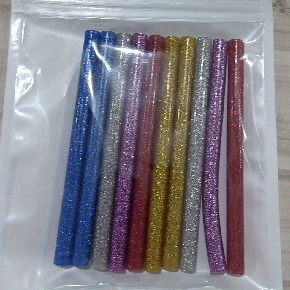 This set includes 10 high adhesive hot melt glue sticks with a glitter finish. Ideal for various crafting projects and strong bonding.
