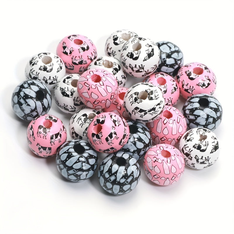 Add a unique touch to your jewelry creations with these 10pcs mixed style bottle cow pattern wooden beads. Perfect for making bracelets, necklaces, and more.