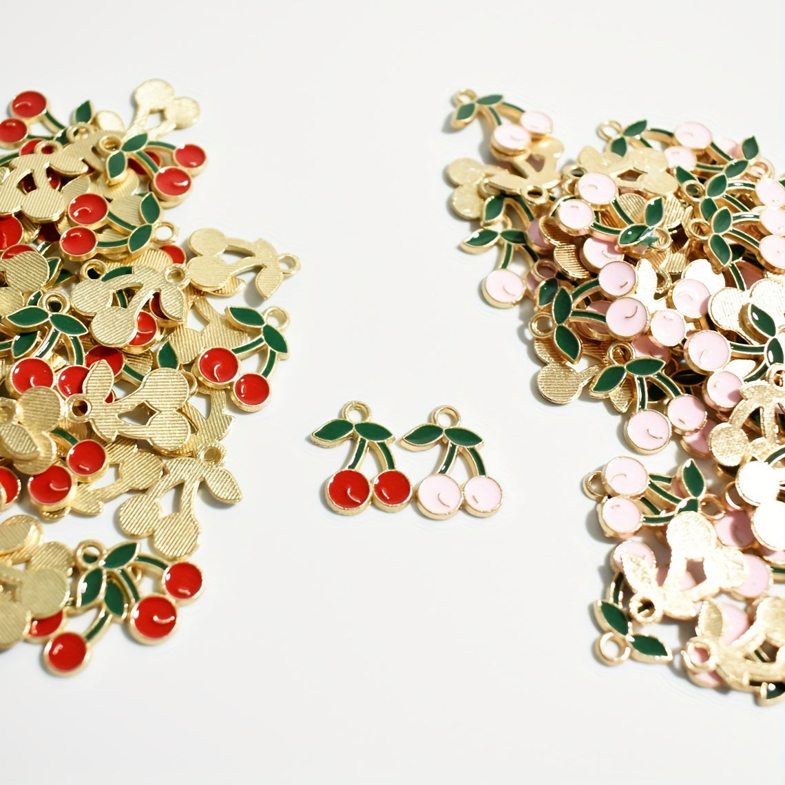 Add a touch of sweetness to your creations with these pink cherry pendants. Perfect for necklaces, earrings, bracelets, and more!