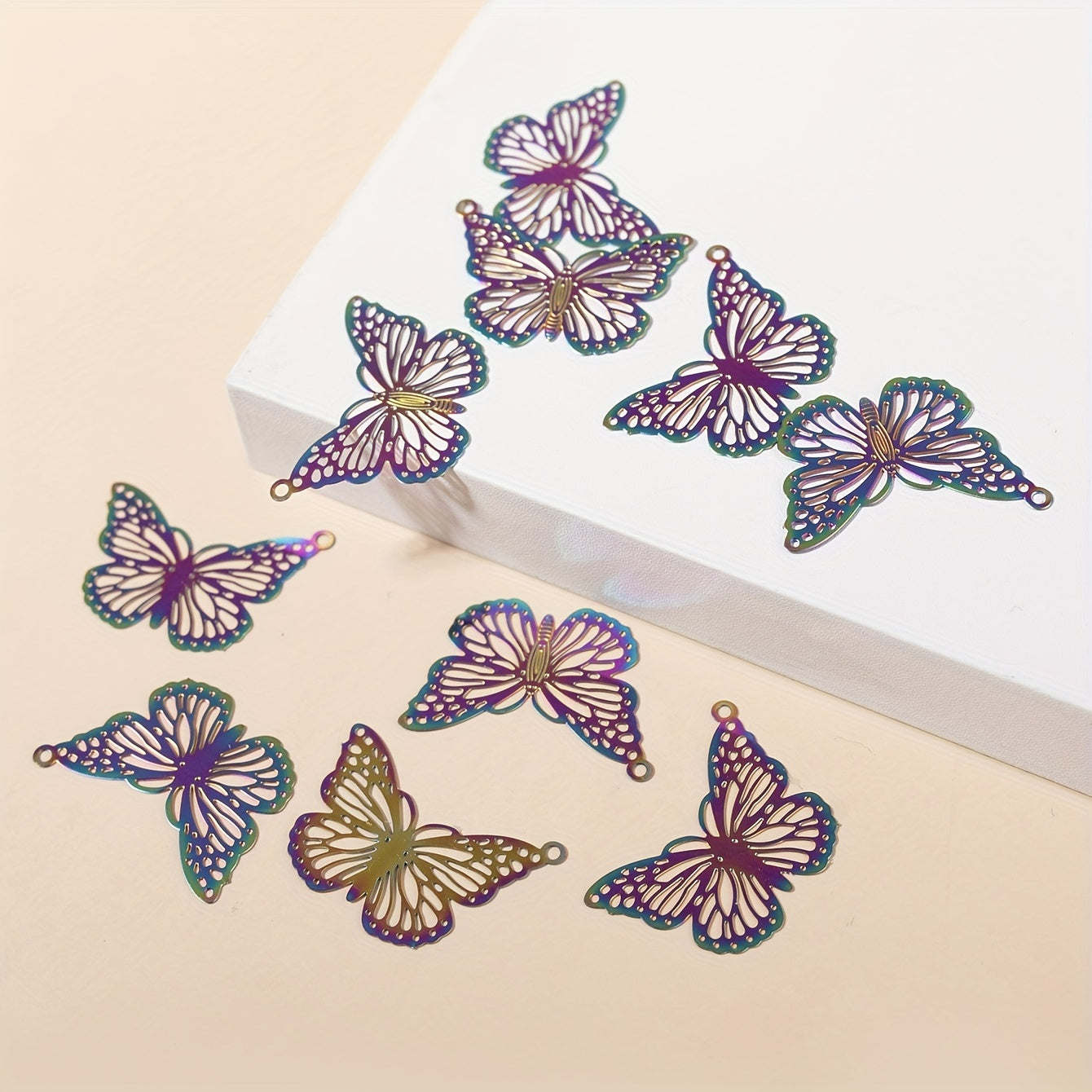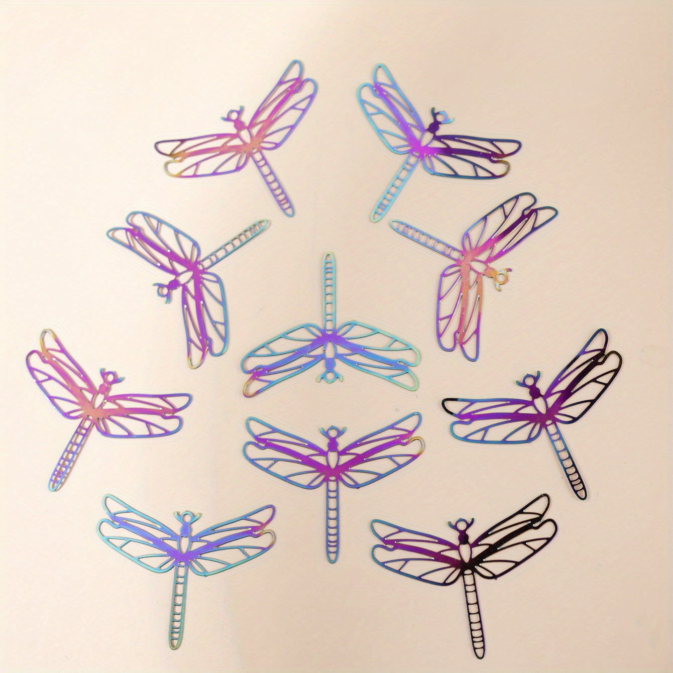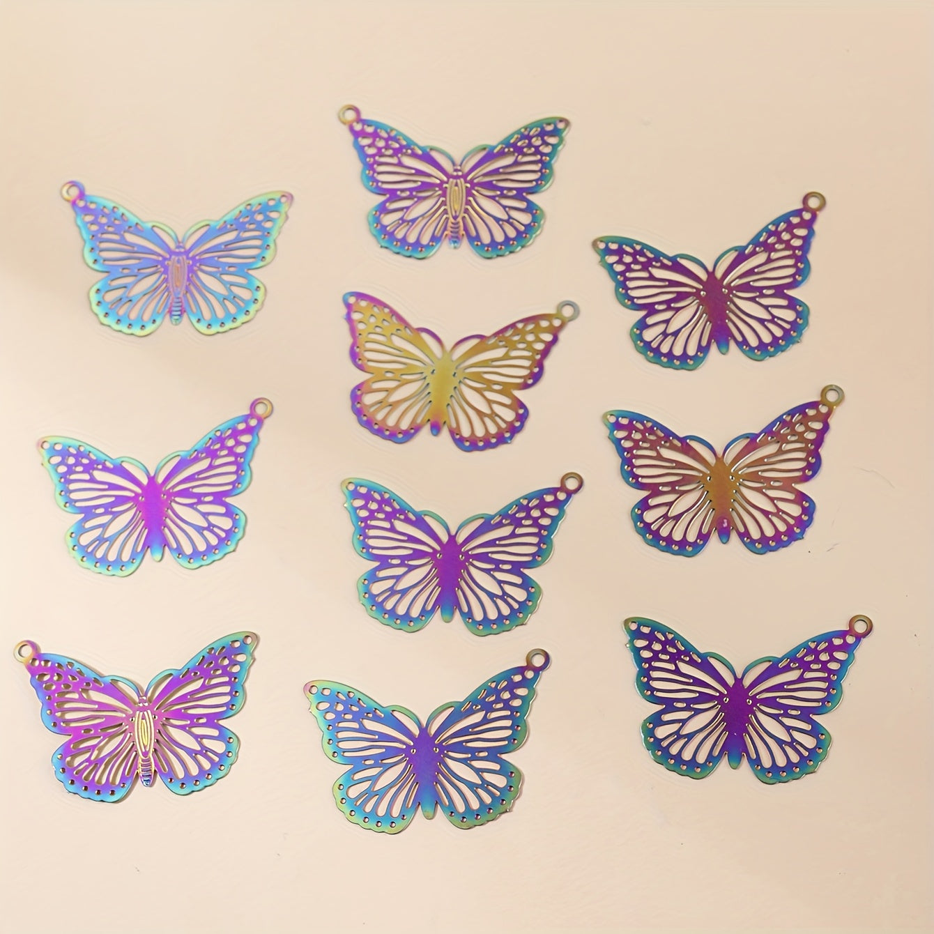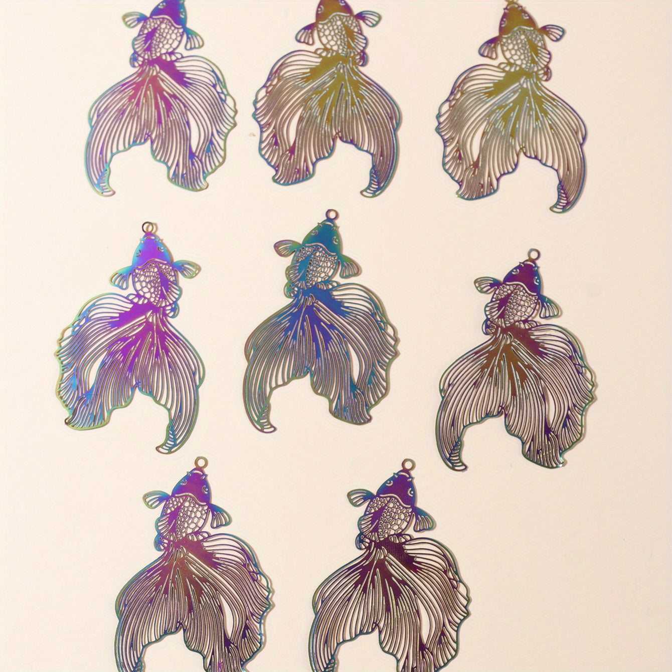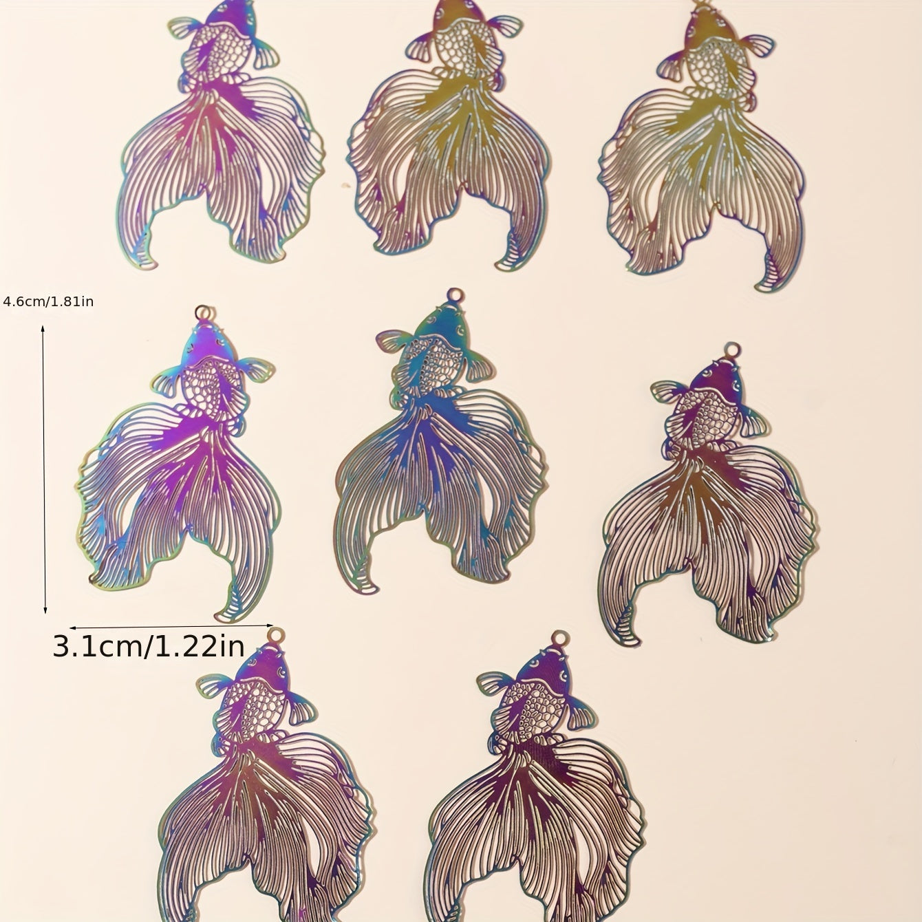 Add a touch of whimsical charm to your creations with these 10pcs rainbow stainless steel hollow pendants featuring butterfly, dragonfly, and goldfish patterns. Perfect for earrings, bracelets, and necklaces.