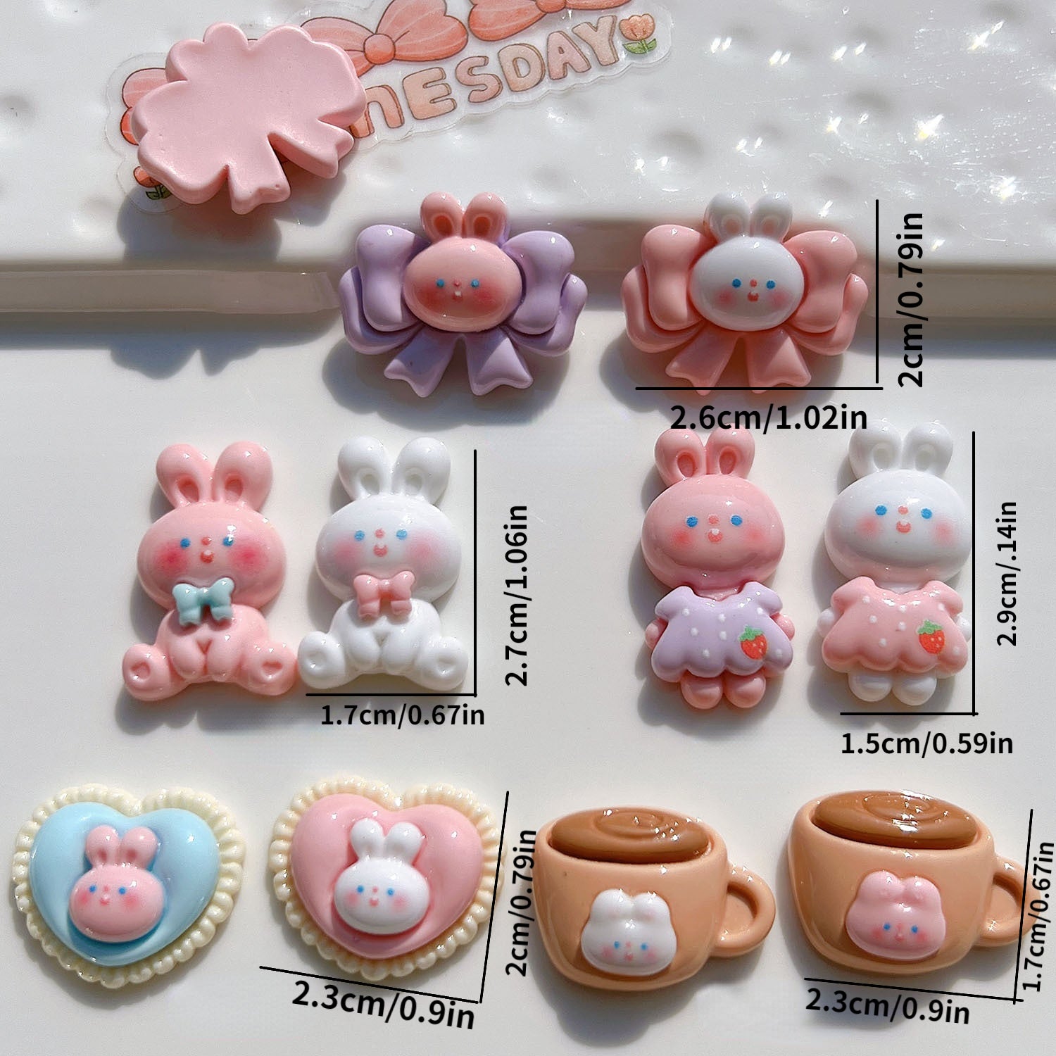 10pcs Resin Accessories Shoe Buckles Hat Patches Bright Face & Love Rabbit
