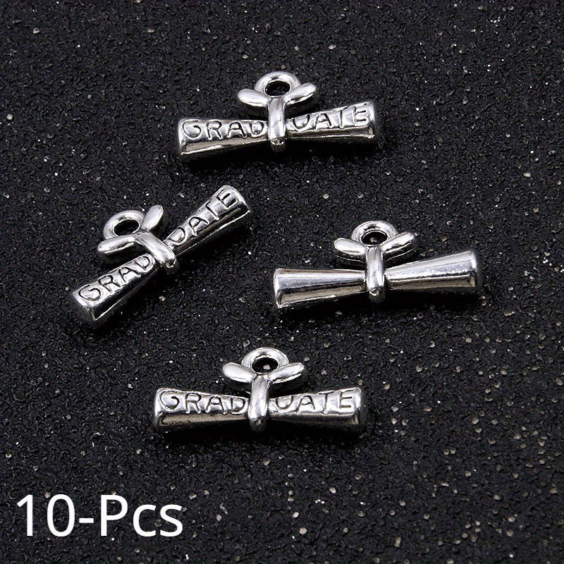 10pcs Retro Alloy Graduation Scroll Pendant DIY Jewelry Accessories
