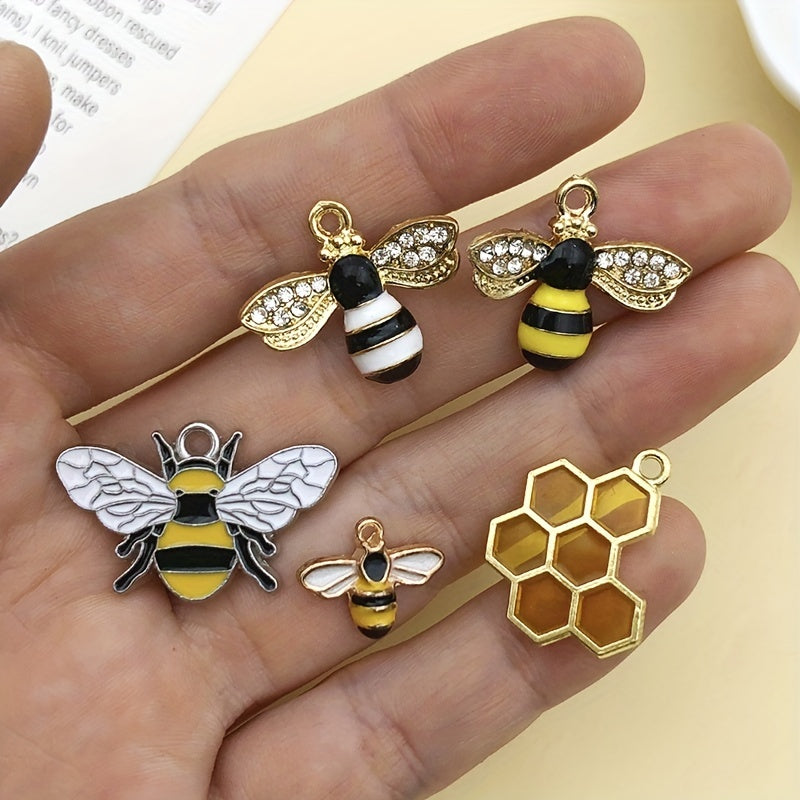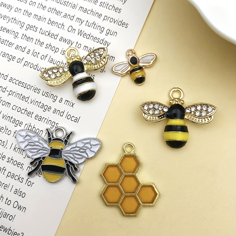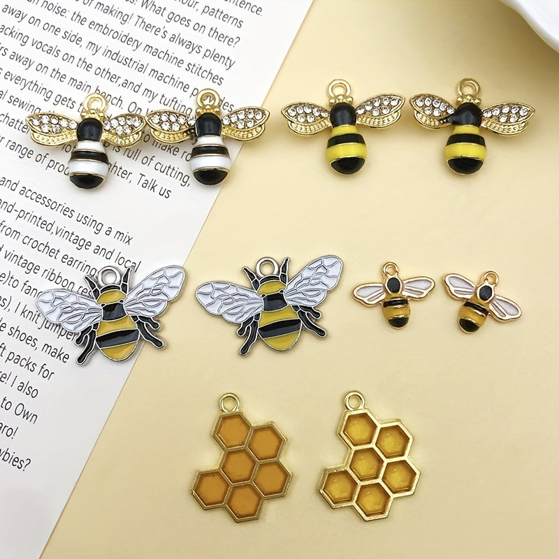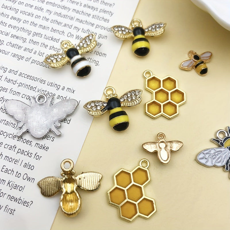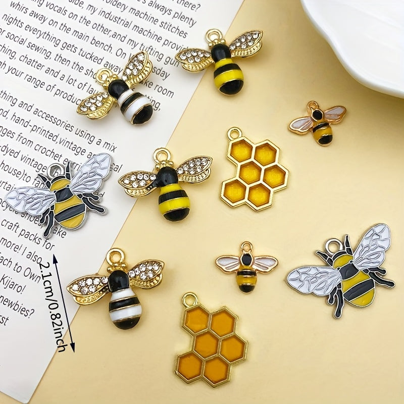 This set includes 10 rhinestone bee enamel charms made of plated alloy metal. Ideal for creating necklaces, bracelets, earrings, and other jewelry pieces.