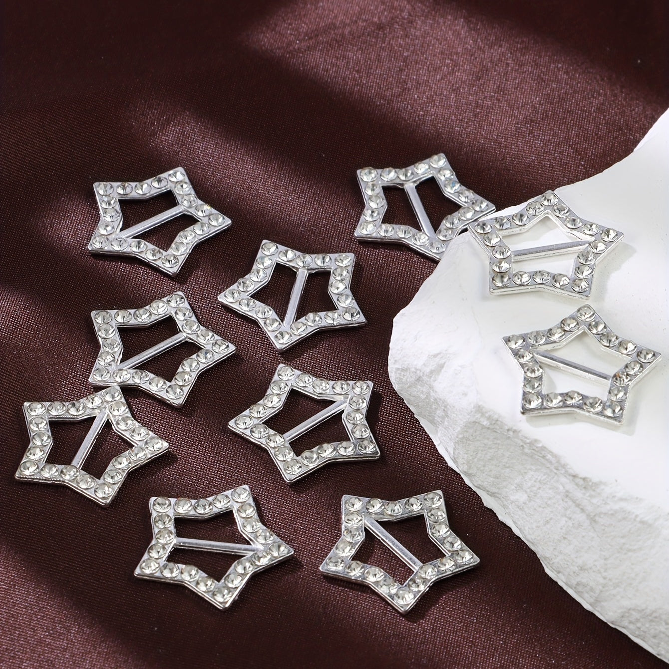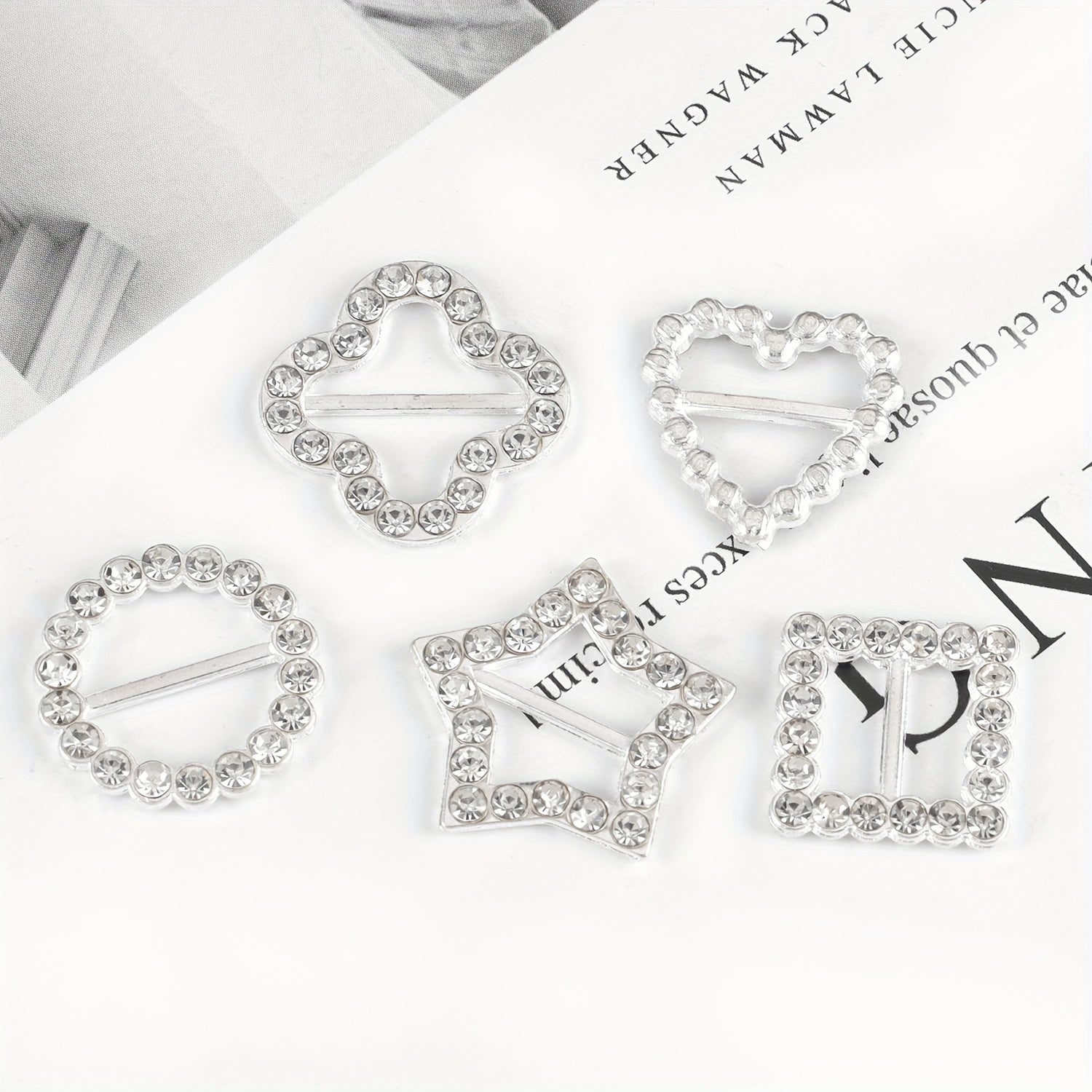 Add some sparkle to your outfits with these rhinestone charms clothing buckles. Perfect for scarves, shirts, and more, these metal corner square round heart-shaped charms are a stylish addition to any wardrobe.