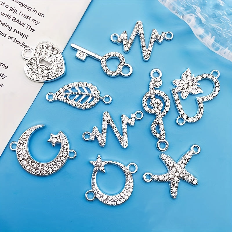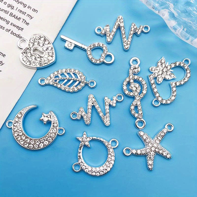 Elevate your jewelry making projects with these 10 assorted shaped rhinestone connectors. Perfect for bracelets, necklaces, and other accessories.