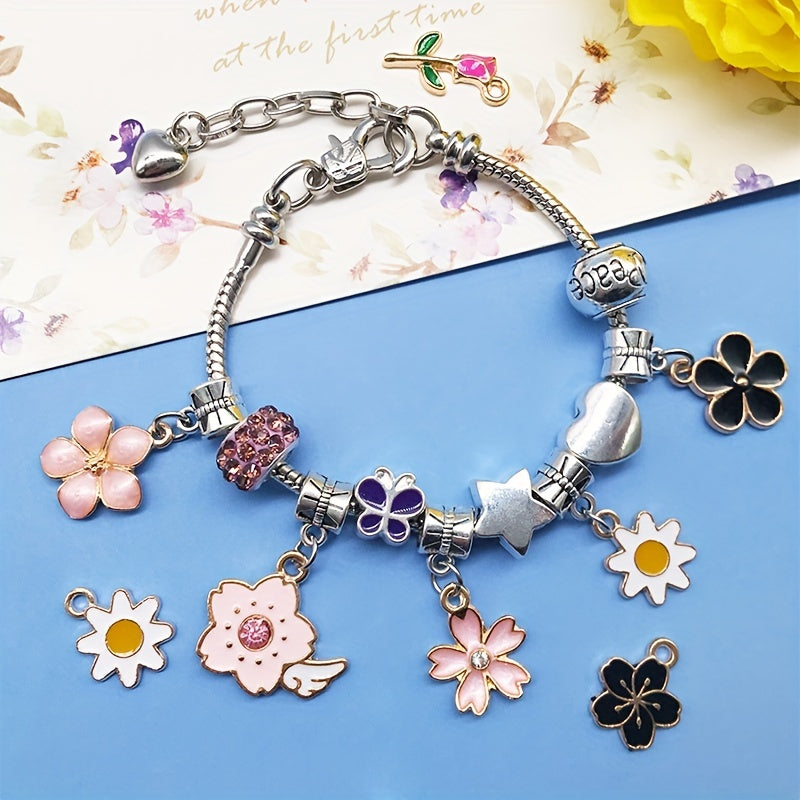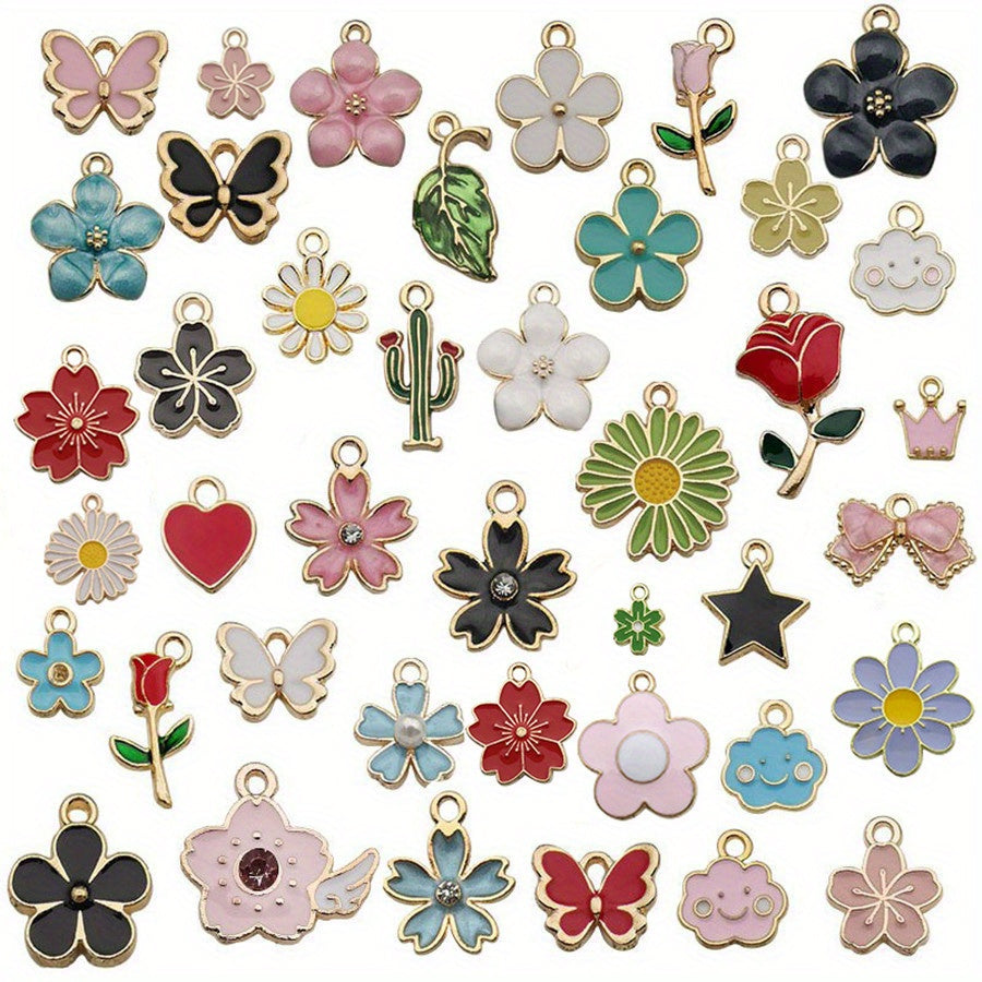 These rose flower shape pendants are made of zinc alloy with butterfly spring and oil drip design, perfect for creating unique bracelets and jewelry pieces.