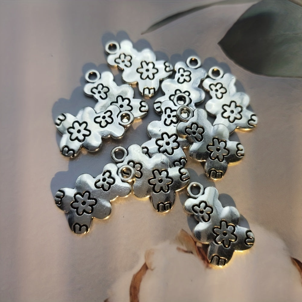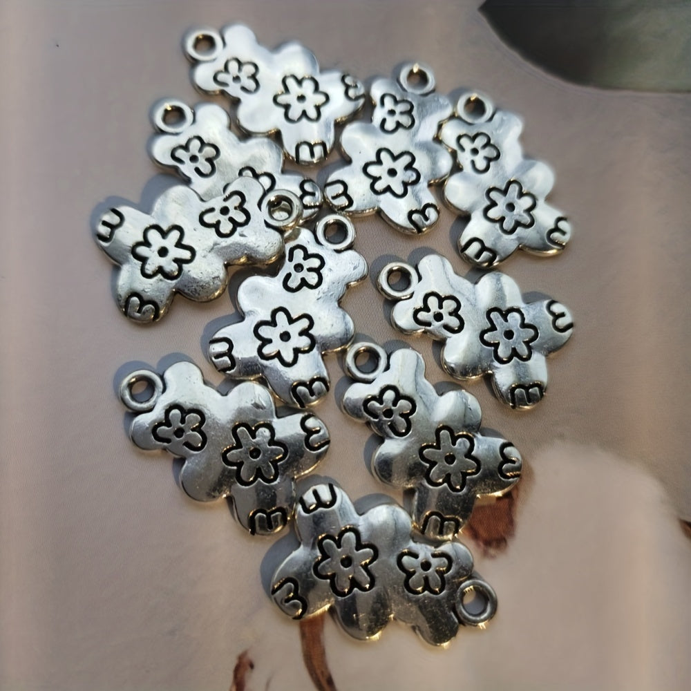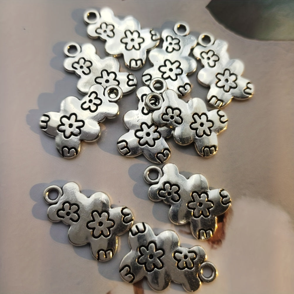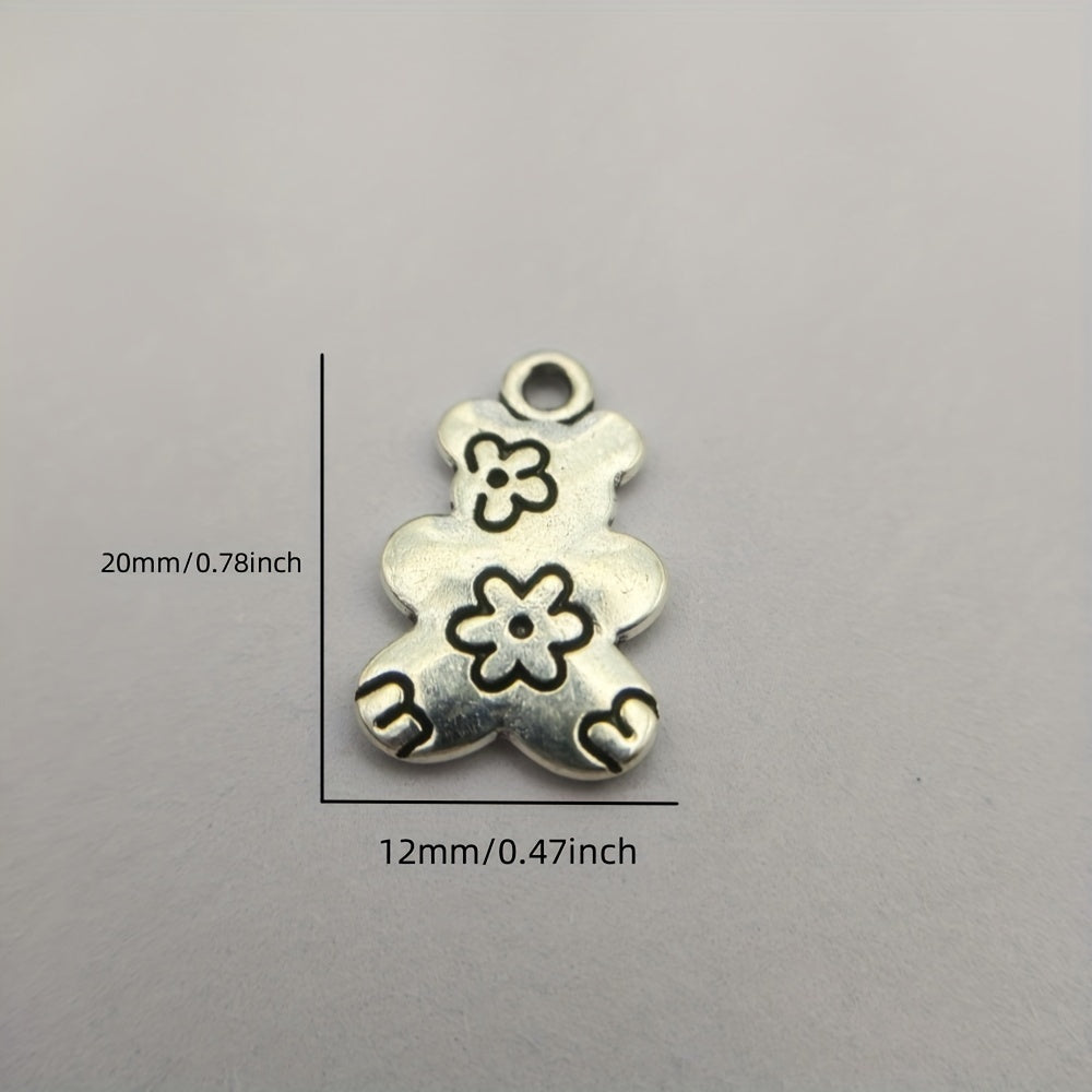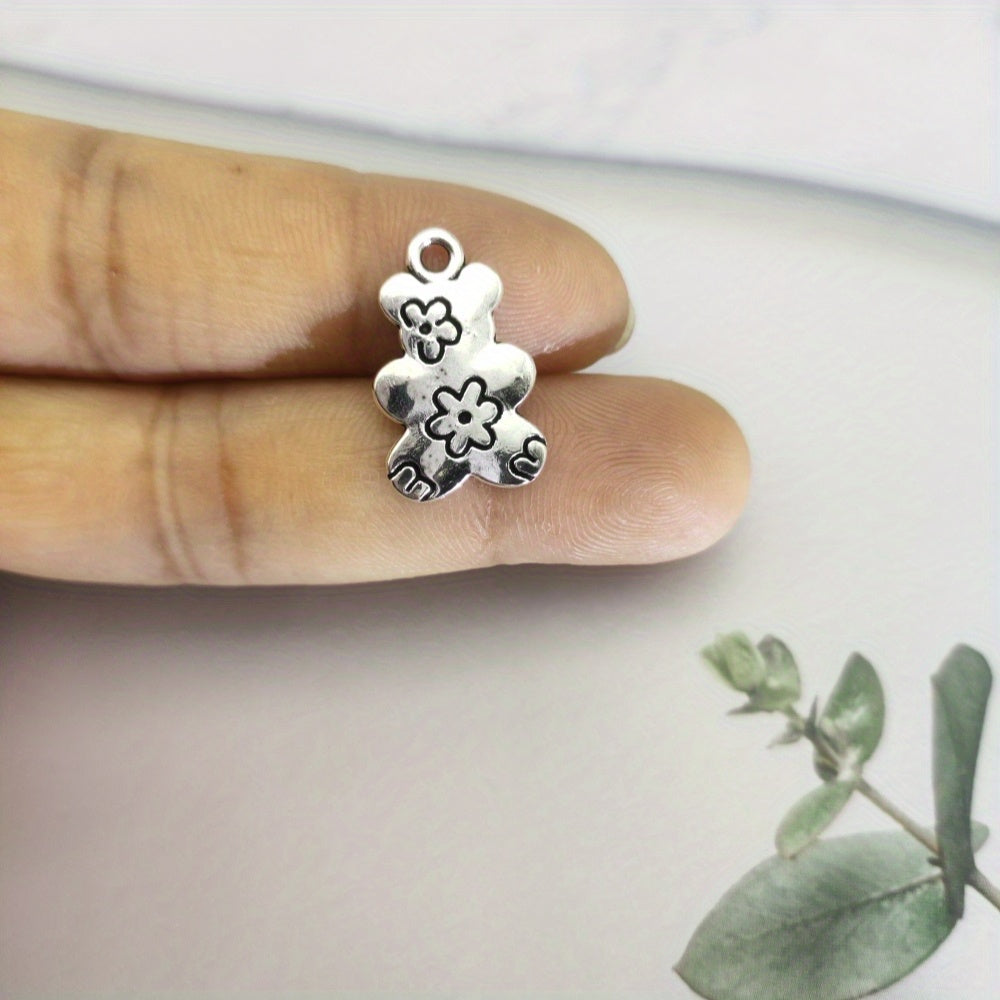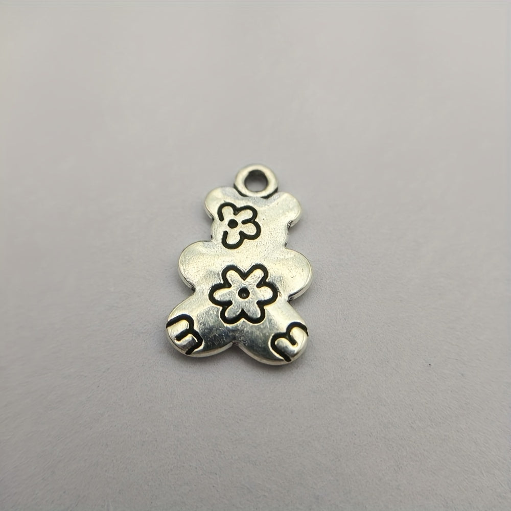 Enhance your jewelry making with these 10pcs zinc alloy pendants in a cute bear shape with flower pattern. Perfect for DIY bracelets and necklaces.