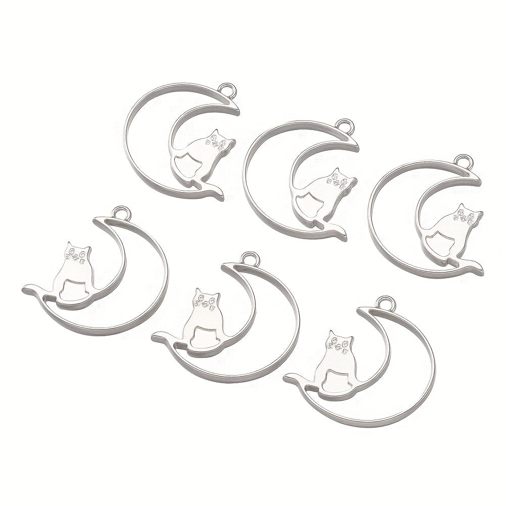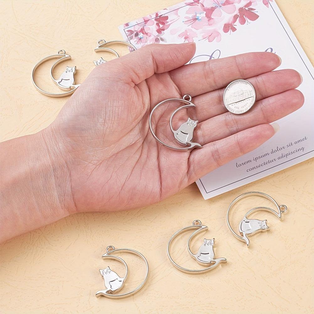 These silver alloy pendants are great for making necklaces, bracelets, earrings, and other jewelry pieces. The hollow crescent and cat shapes add a unique touch to your creations.