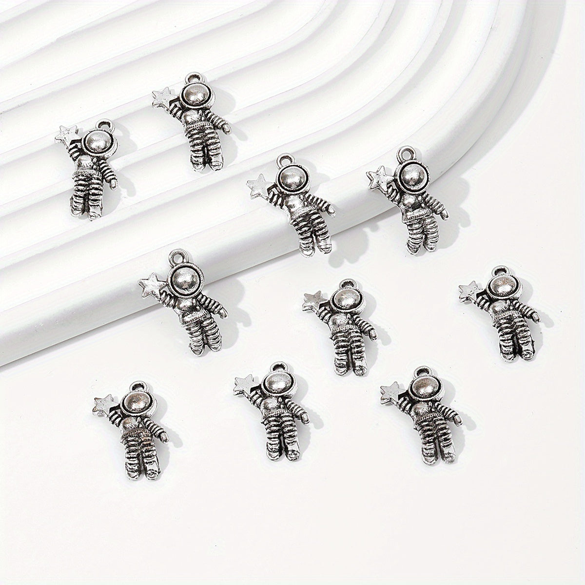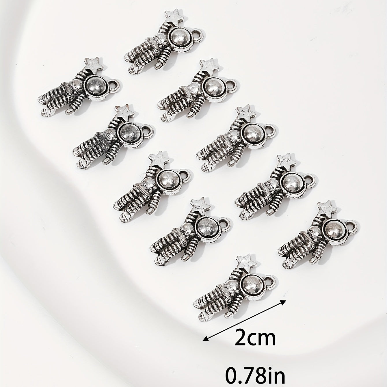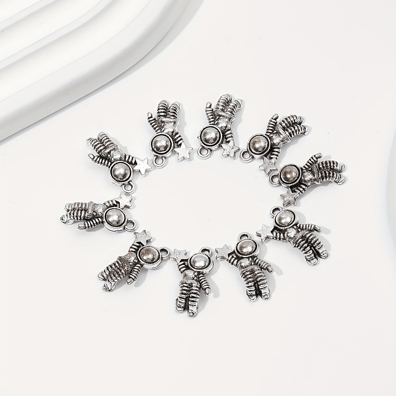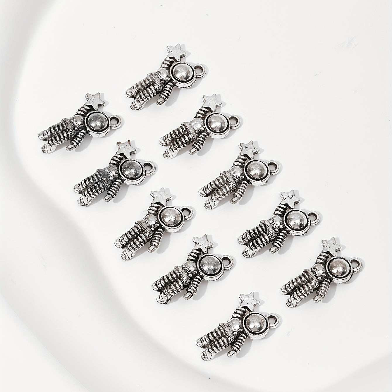 Enhance your jewelry collection with these 10pcs ancient silver space astronaut pendants. Perfect for creating bangles, necklaces, earrings, and more.