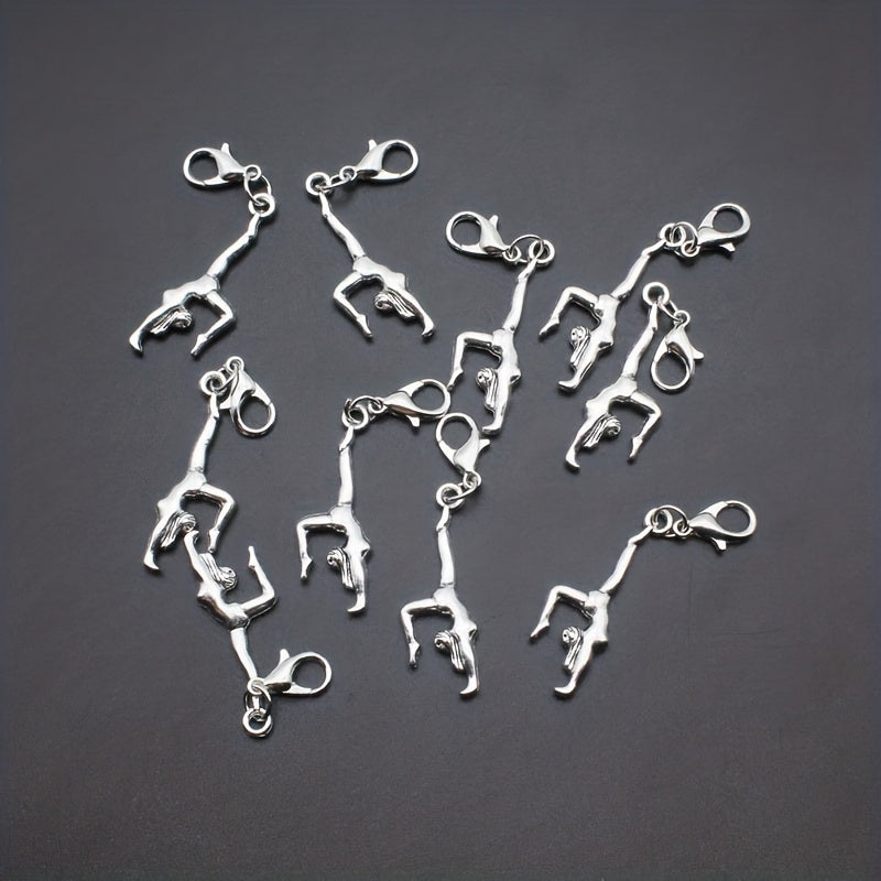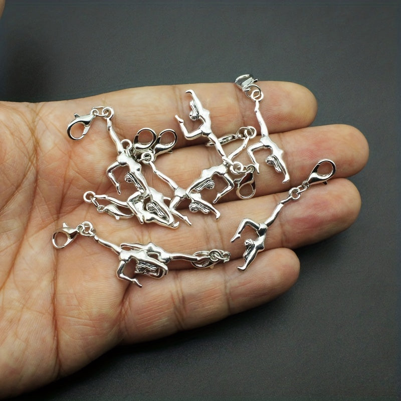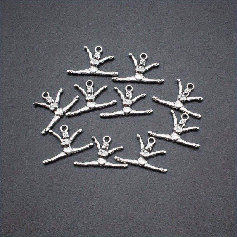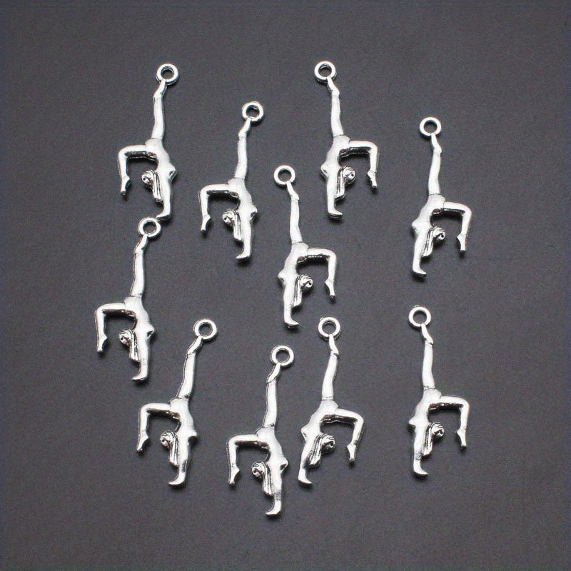 10pcs Silvery 3D Gymnastics Sportsman Pendant DIY Necklace Earrings Bracelet
