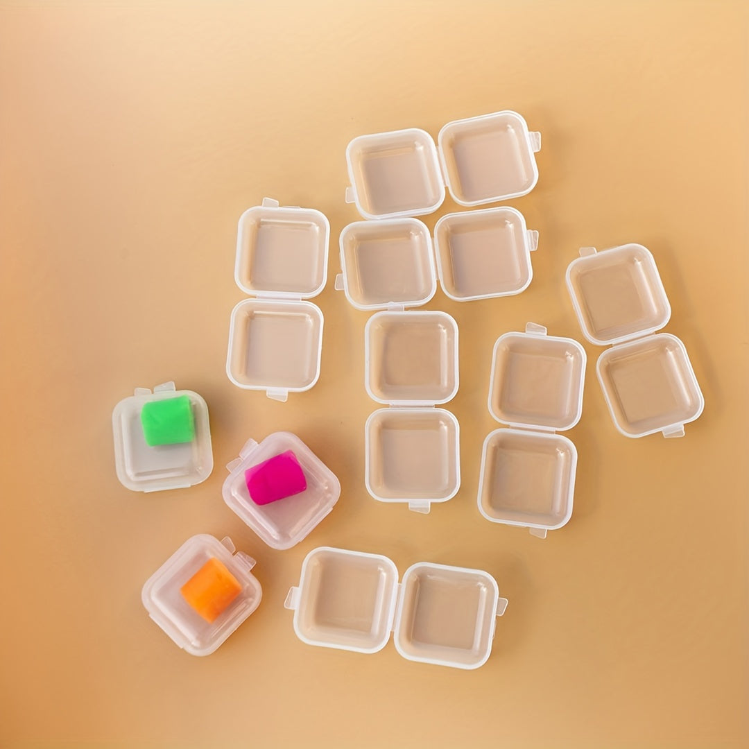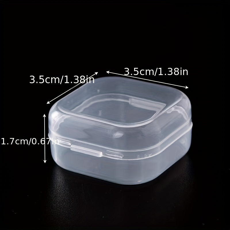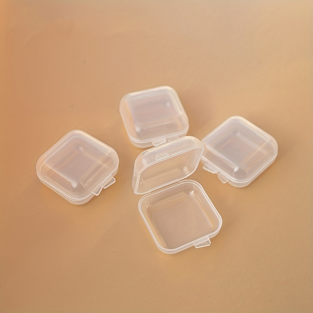 Keep your ear plugs organized with these transparent plastic storage boxes. Each box is small and square, perfect for storing ear plugs securely.