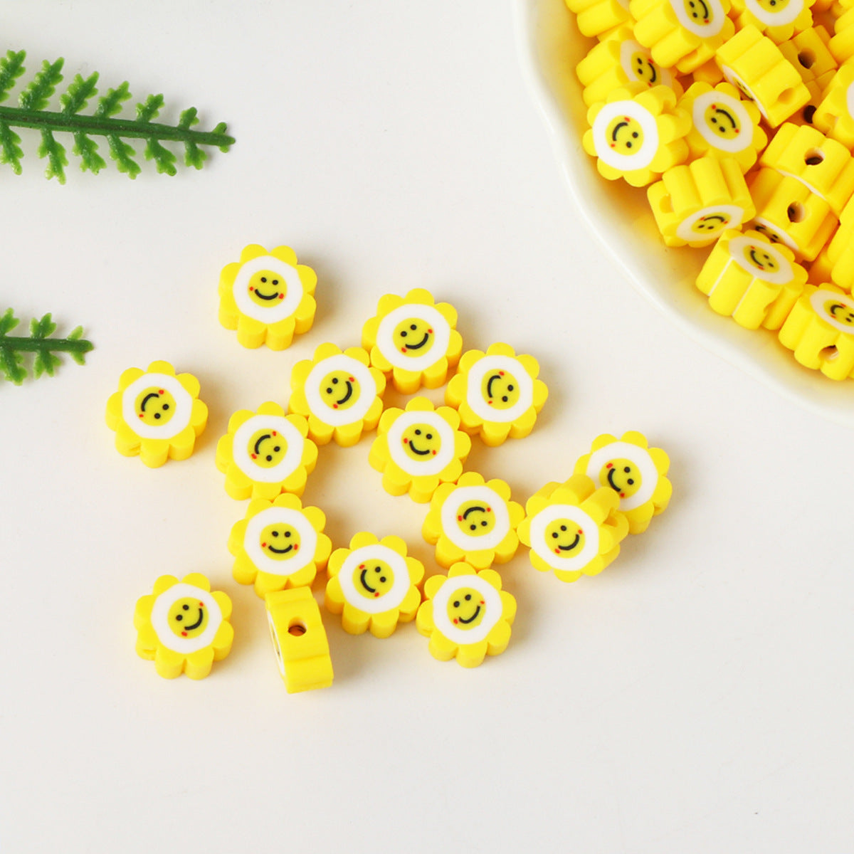 10pcs Soft Pottery Resin Beads for DIY Bracelet Necklace - Flower Shape
