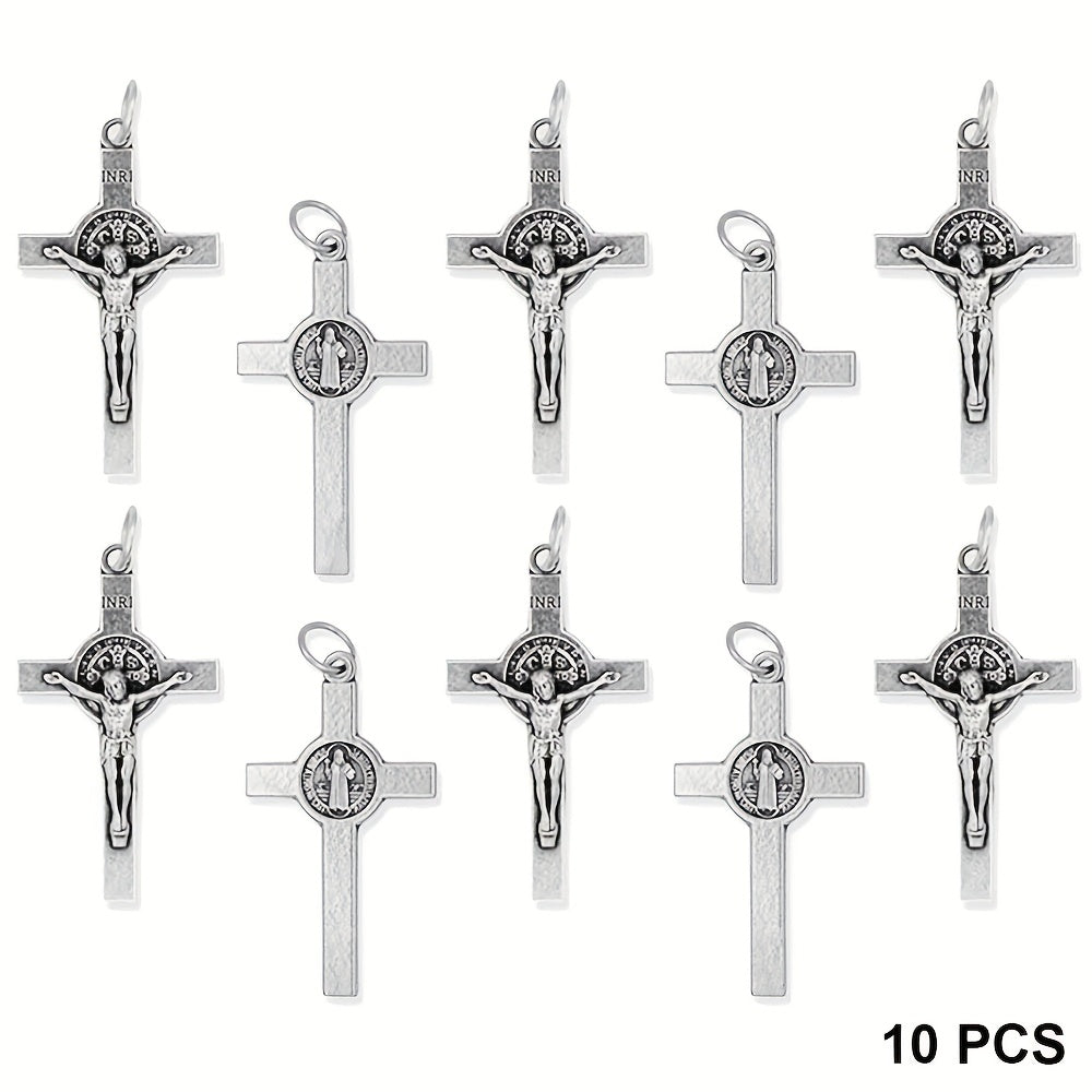 Get this set of 10 St Benedict Crosses, perfect for creating stunning jewelry pieces. The crosses feature the Rose of St Benedict design.