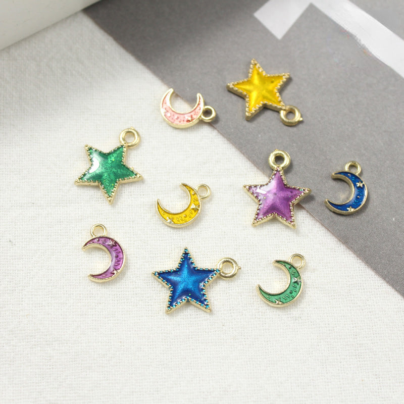 Get creative with these 10pcs star and moon pendants perfect for bracelets and necklaces.