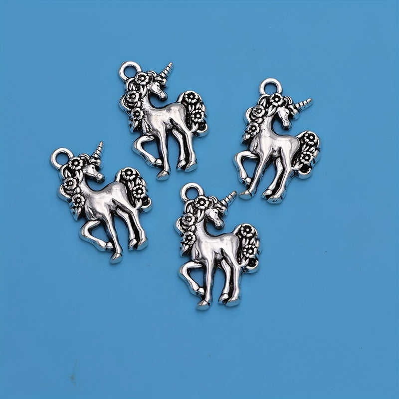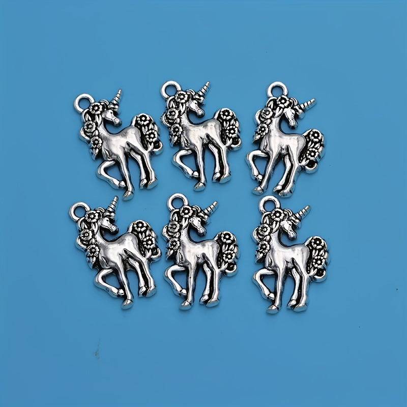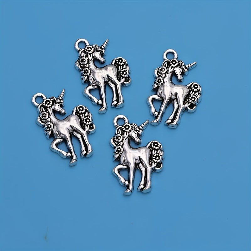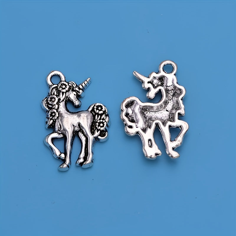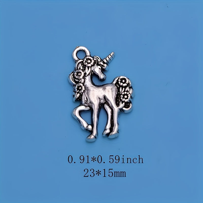 These silvery unicorn alloy pendants are perfect for creating your own earrings, bracelets, necklaces, and other accessories. Each pendant measures 15x23mm.
