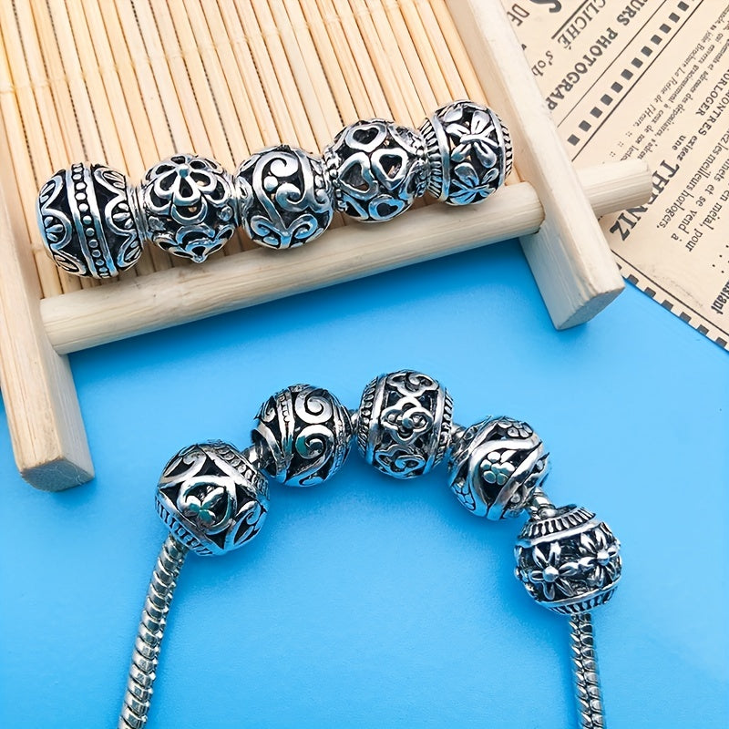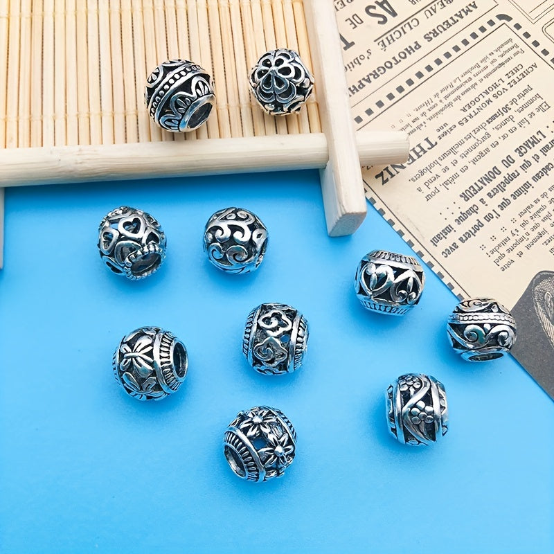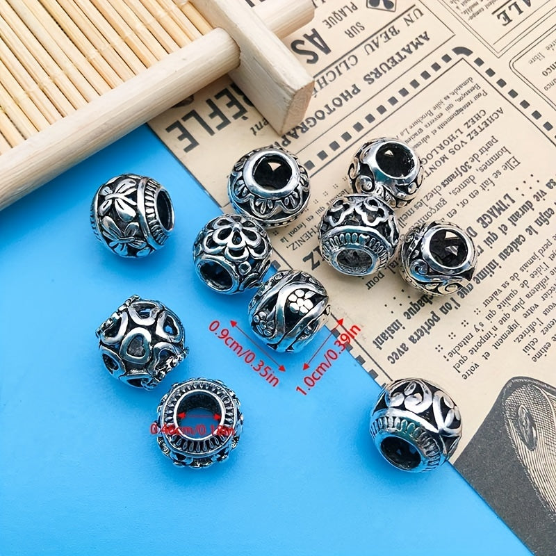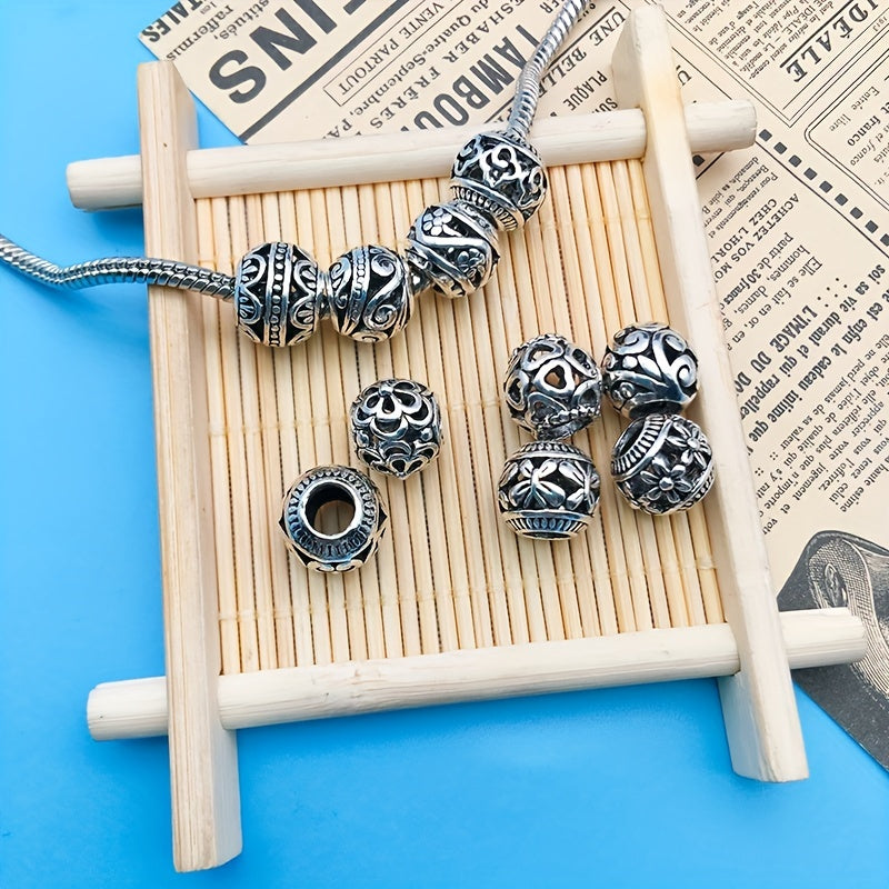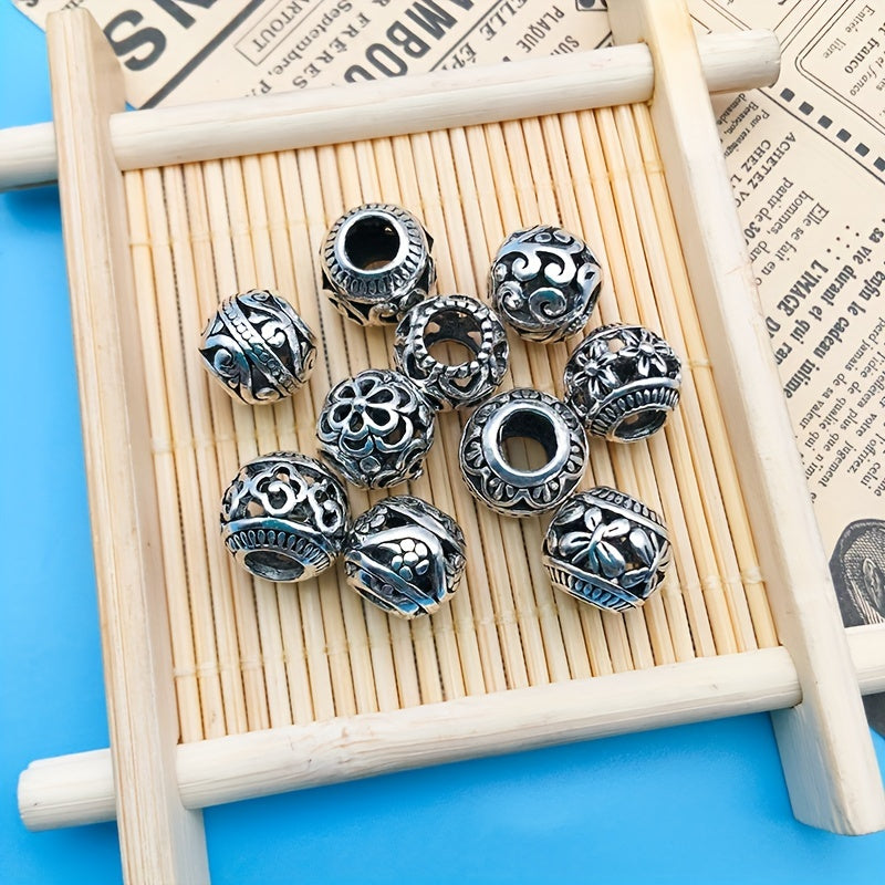 10pcs Vintage Antique Silver Large Hole Spacer Beads DIY Necklace Bracelet