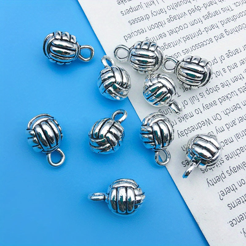 Enhance your jewelry making projects with this set of 10 zinc alloy antique silver sports volleyball pendants. Ideal for necklaces, bracelets, and earrings.
