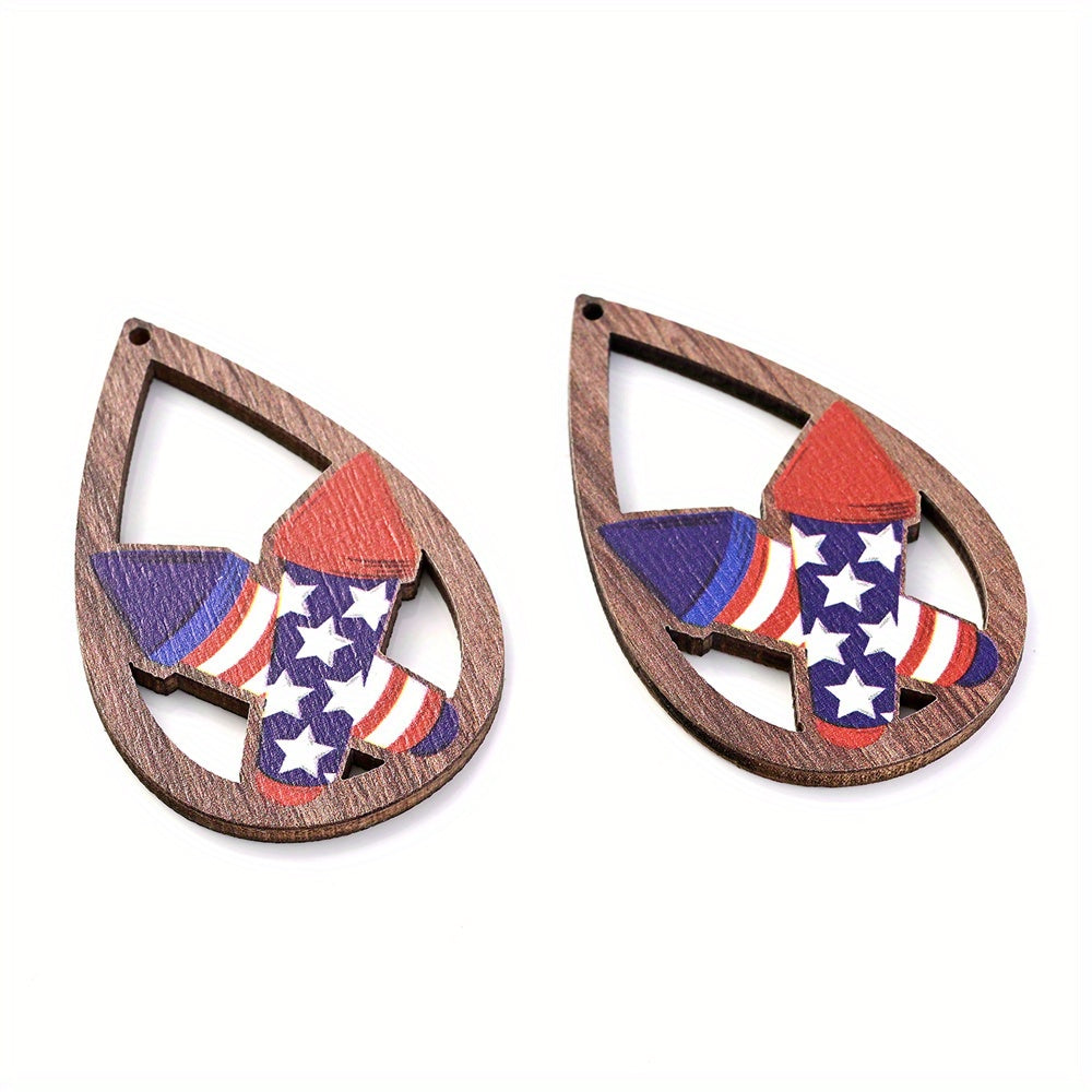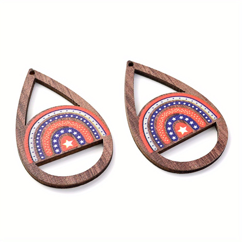 10PCS Wooden Flag Pattern Pendant Beads for Jewelry Making DIY Crafts