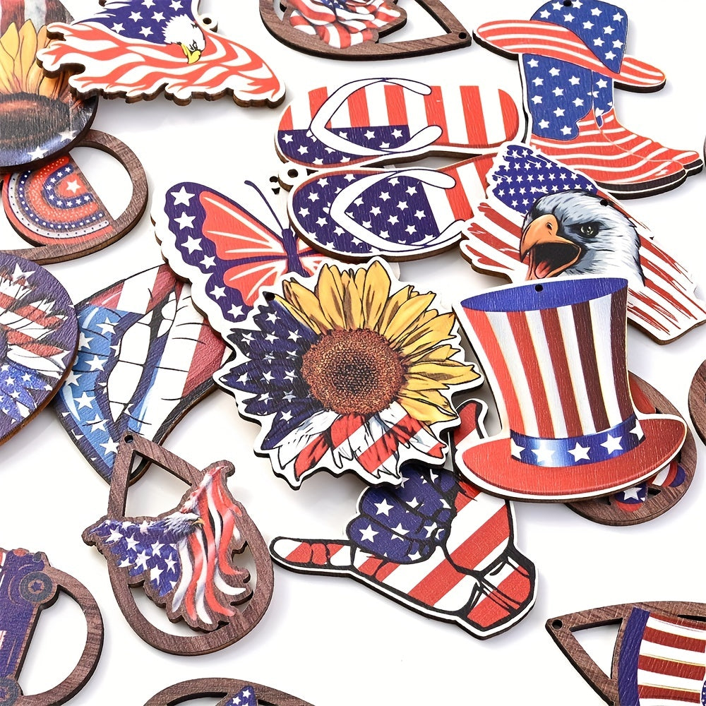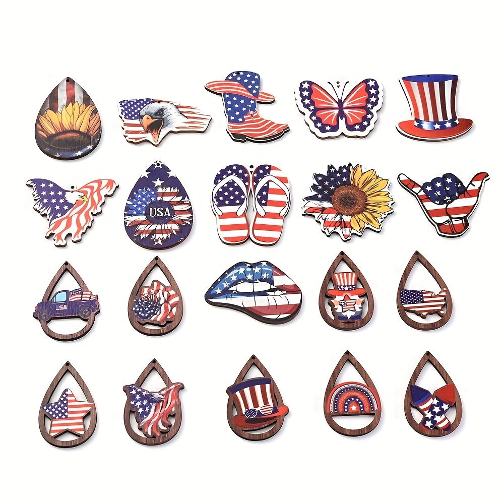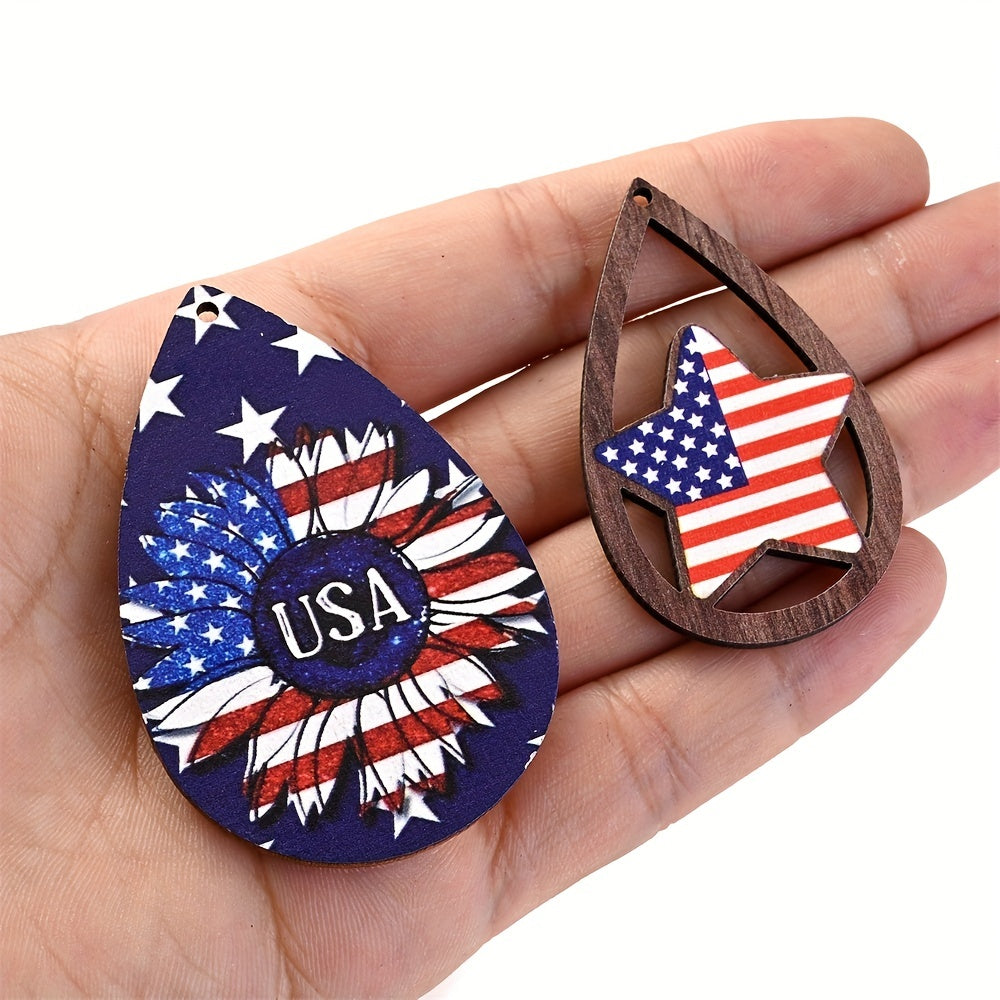Add a patriotic touch to your jewelry with these flag pattern wooden pendant beads. Perfect for July dress decoration, DIY bracelet, and necklace crafts.