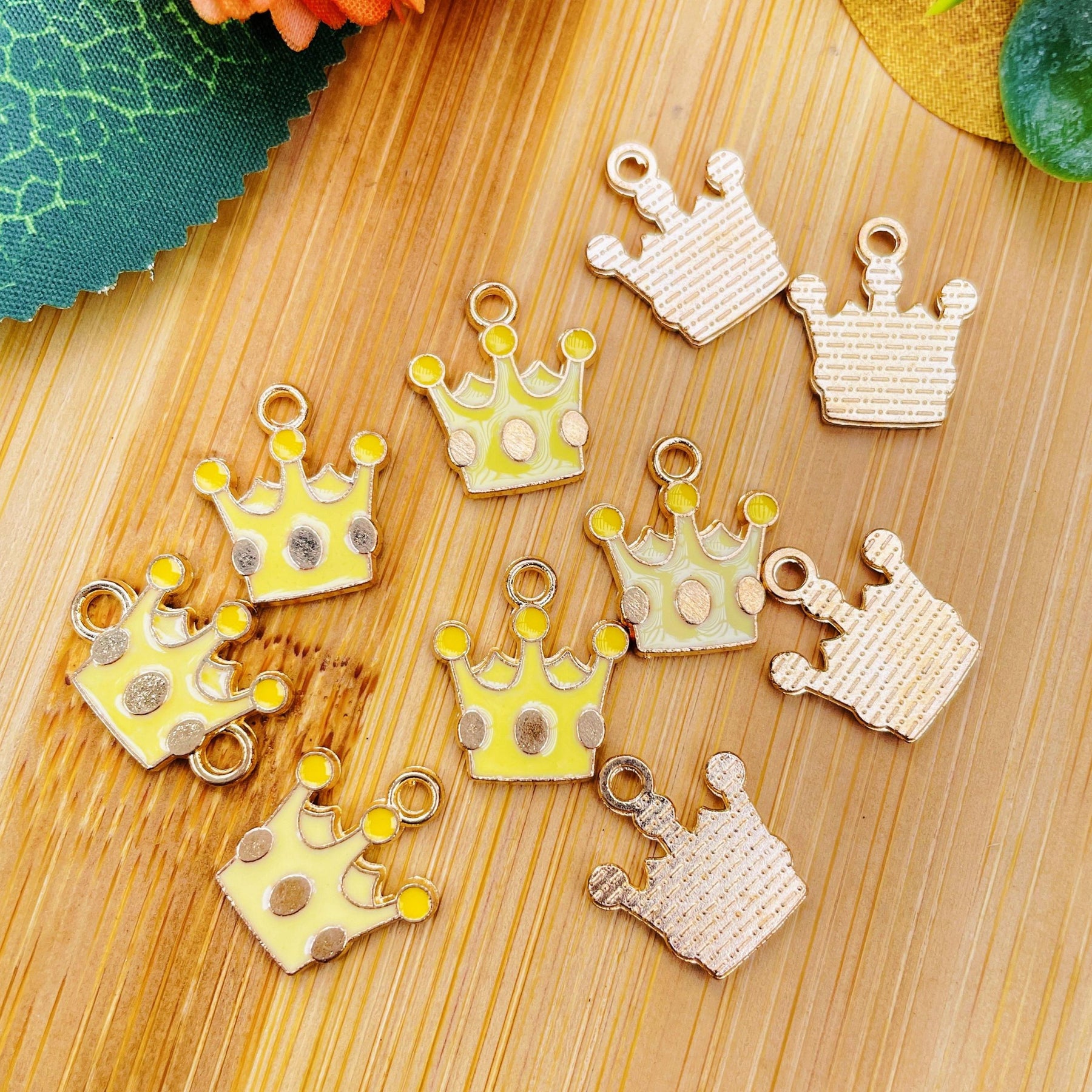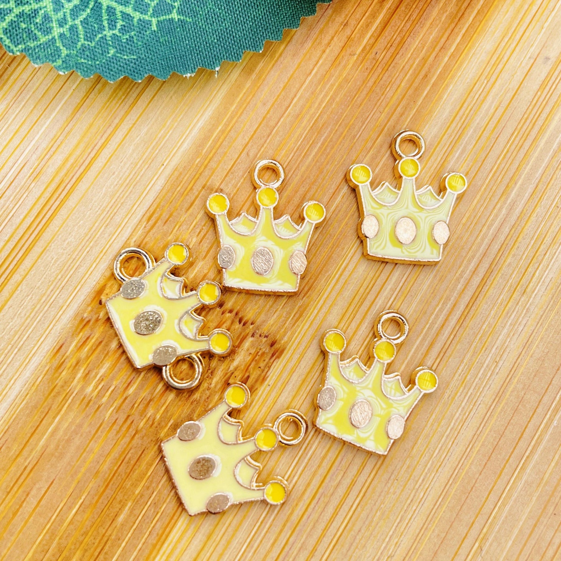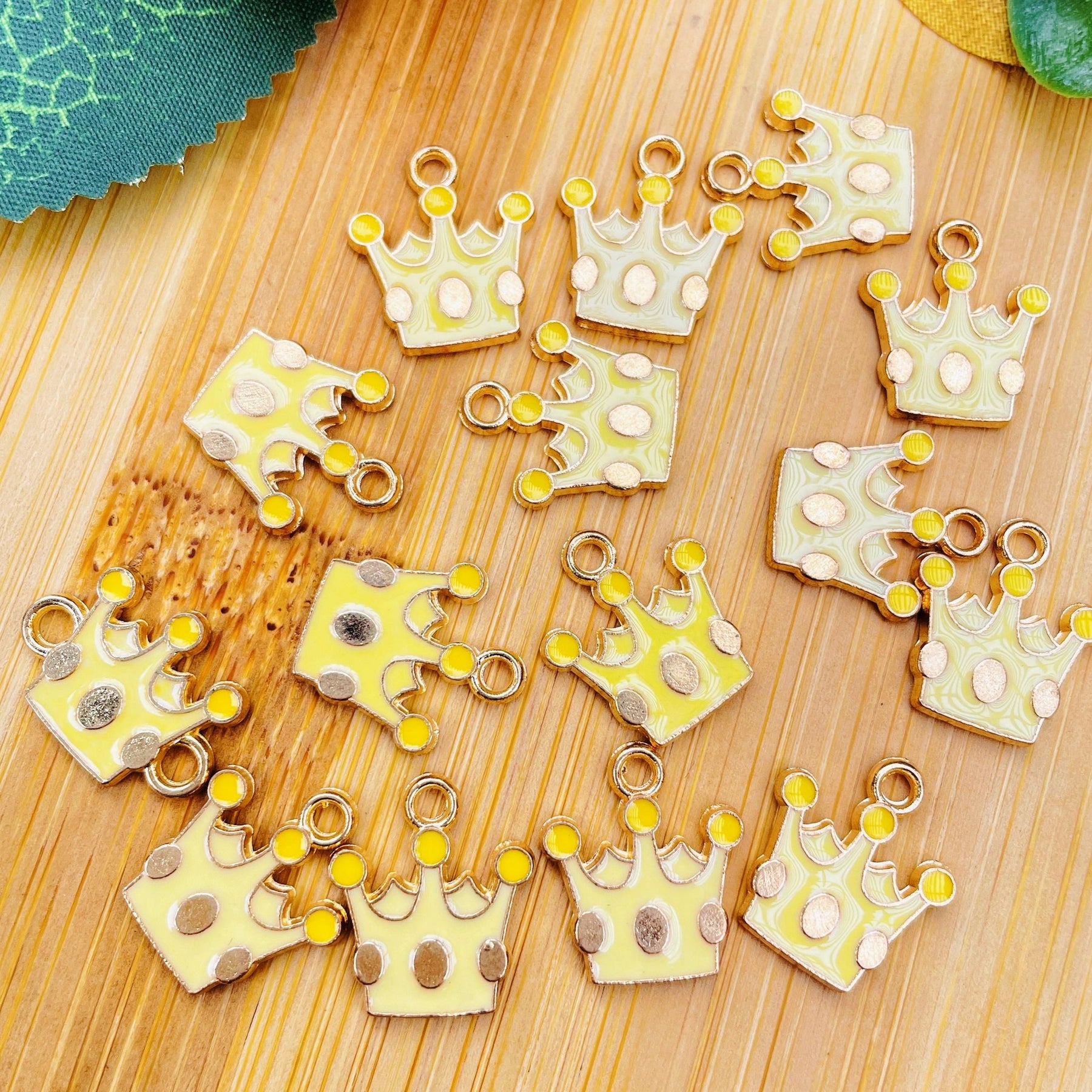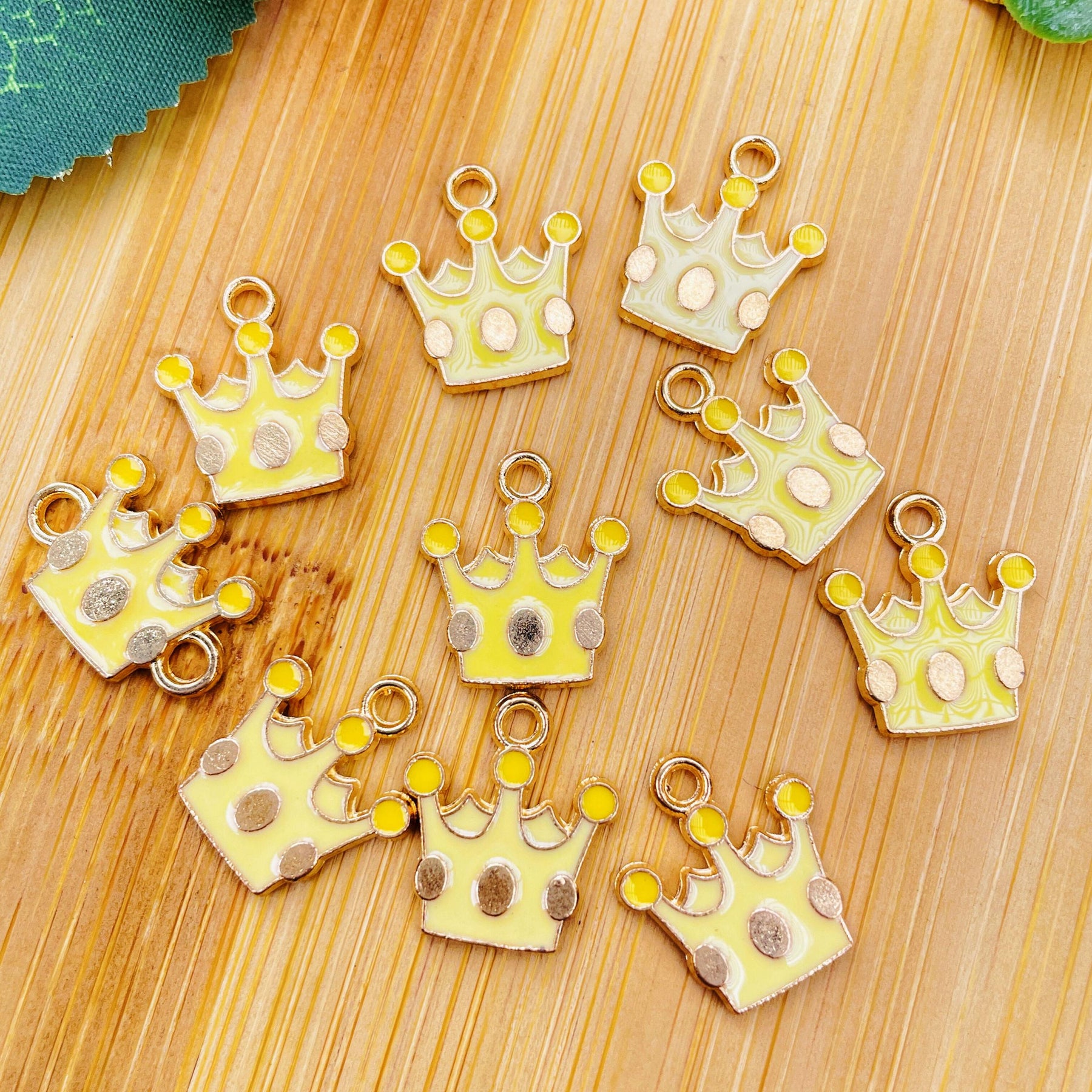 Add a touch of elegance to your DIY jewelry projects with these 10pcs dripping oil yellow crown alloy pendants. Perfect for earrings, bracelets, necklaces, and more!