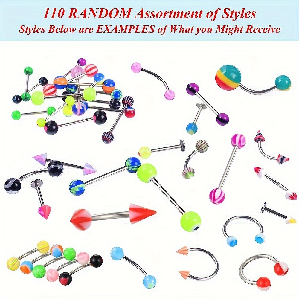 110pcs Mixed Styles Piercing Barbell Body Jewelry Set