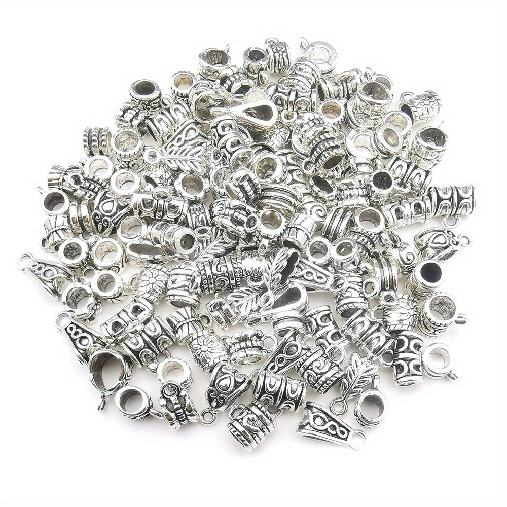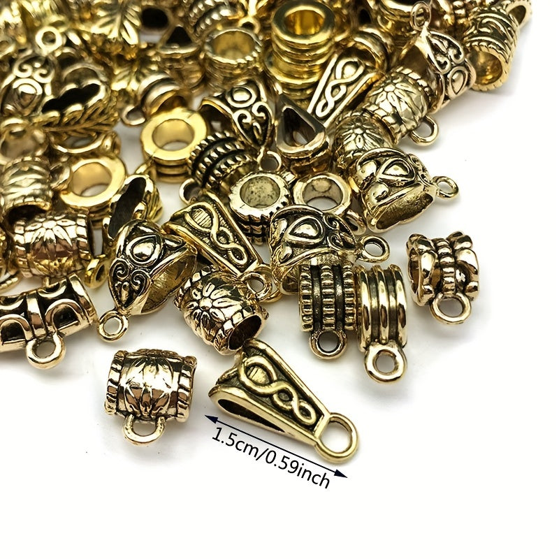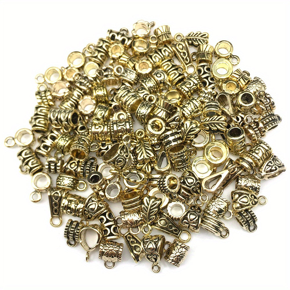 Get this set of 120 antique silver and gold clasps connector bail tube beads for your DIY jewelry making projects. These beads are perfect for adding a touch of elegance to your designs.