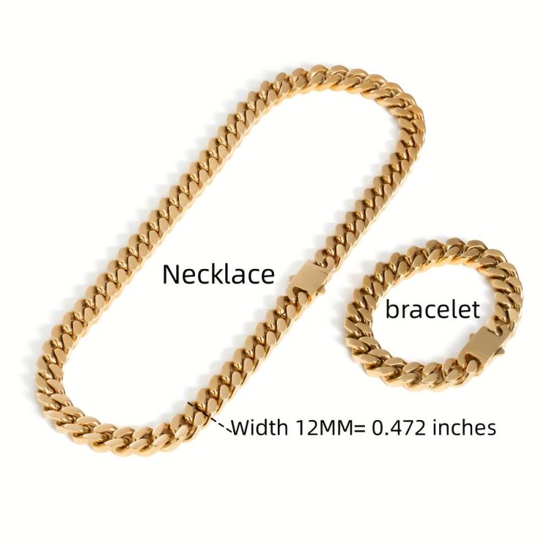 • 12mm wide Stainless Steel Cuban necklace and bracelet set