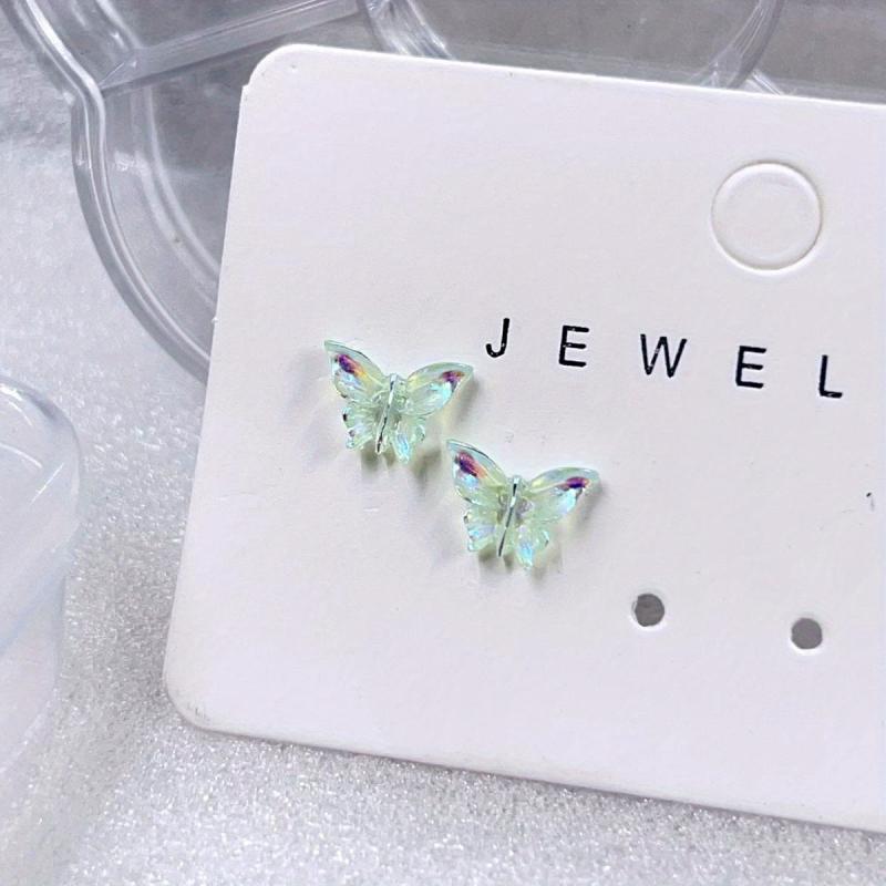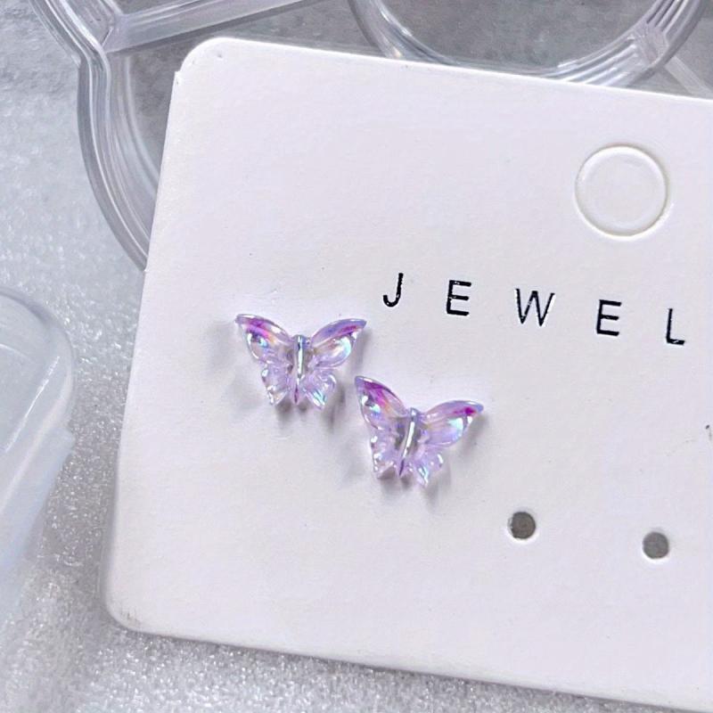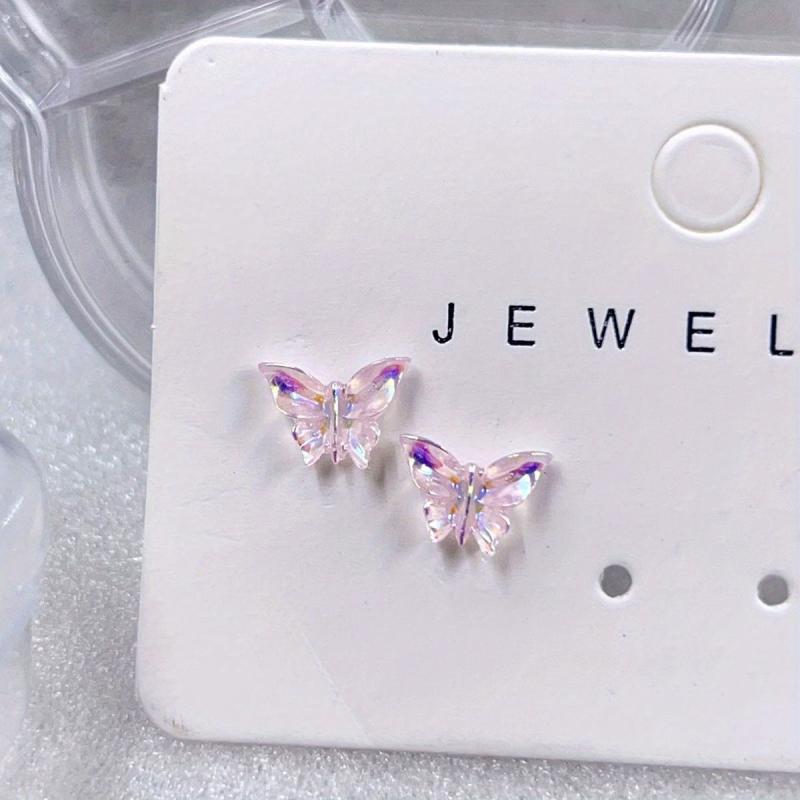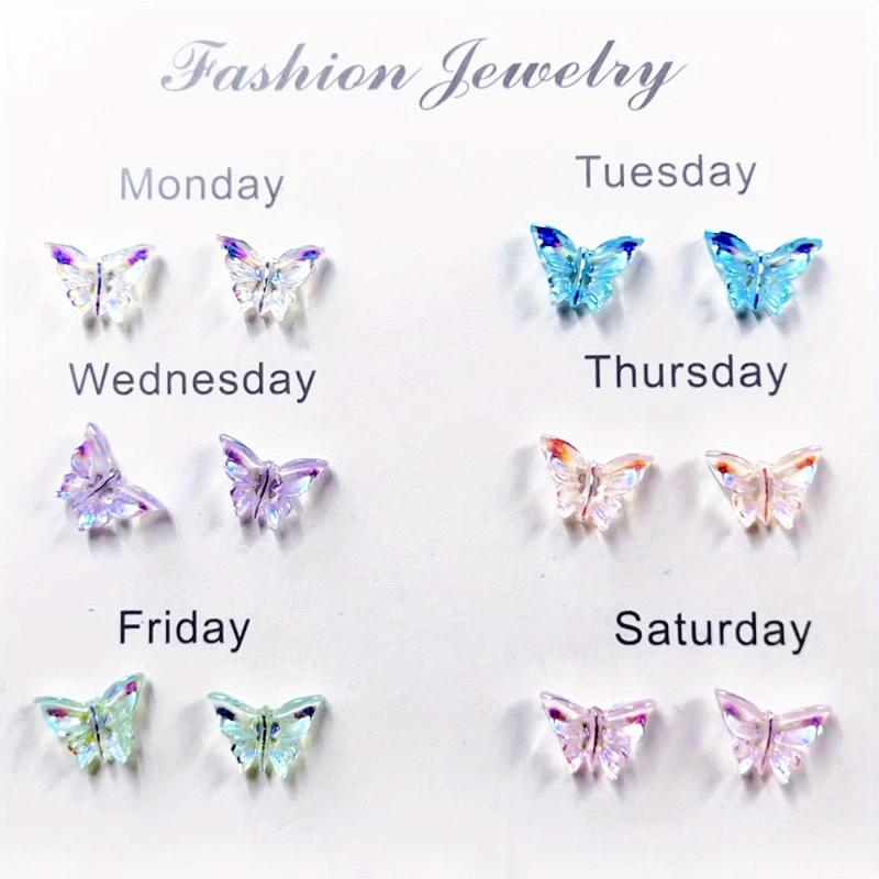 This set of 12 colorful butterfly earrings is made of resin, perfect for women's jewelry collection or as a gift. Each pair features a unique design that adds a touch of charm to any outfit.