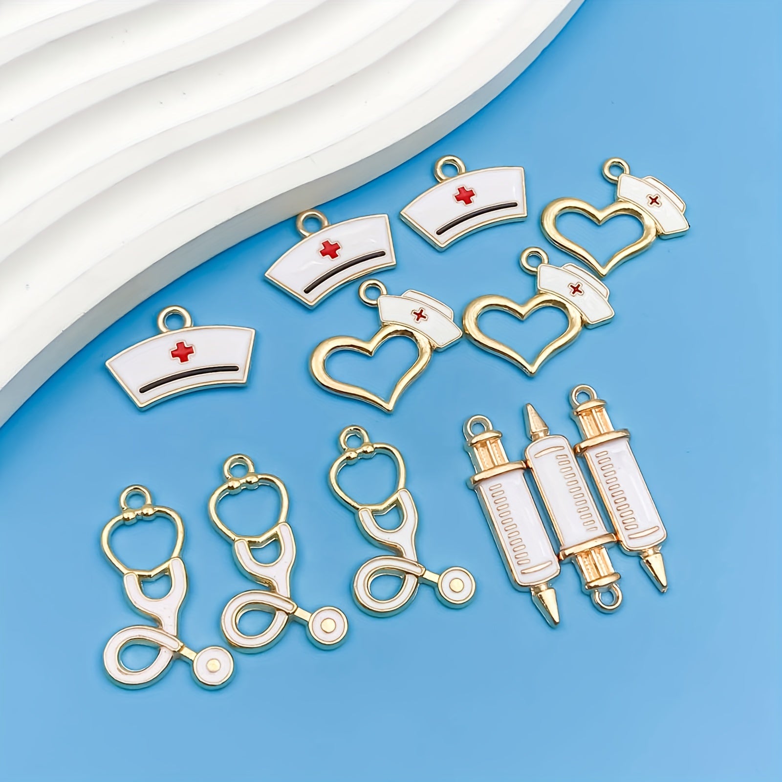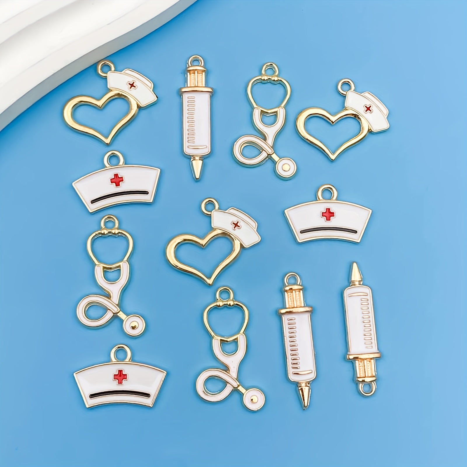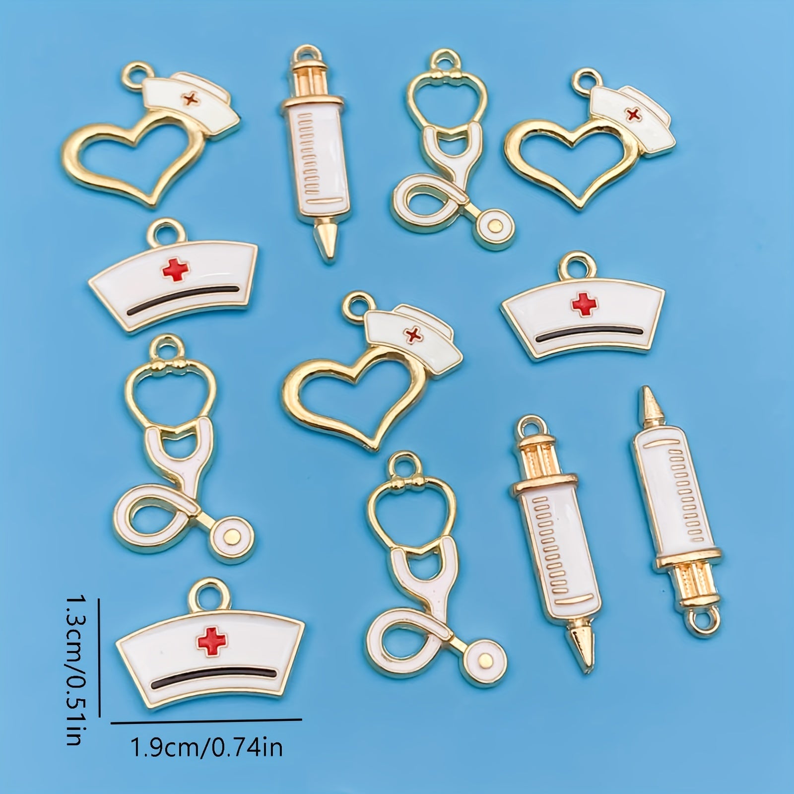 Get a mix of 12 zinc alloy charms with enamel dripping oil design. Perfect for creating jewelry for doctors, nurses, or health enthusiasts. These pendants add a unique touch to your DIY projects.
