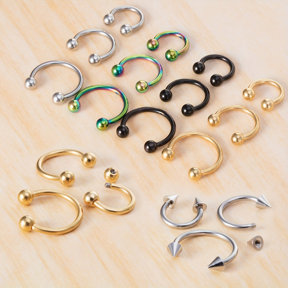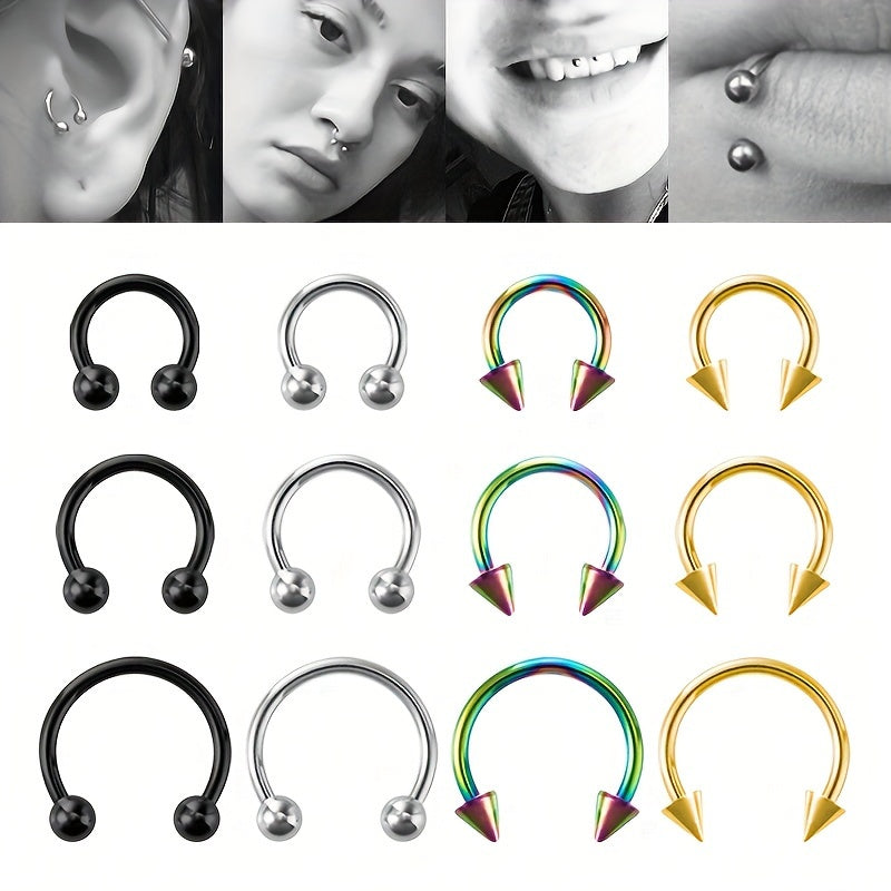 These stainless steel hoop earrings are perfect for cartilage, daith, eyebrow, tragus, and lip piercings. Wear them daily for a bold Gothic punk style.