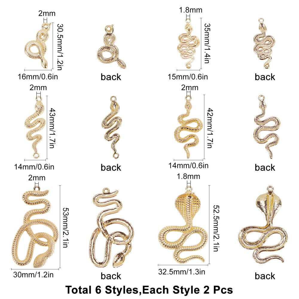 12pcs Light Golden Snake Alloy Jewelry Connectors DIY Earrings Bracelet Necklace