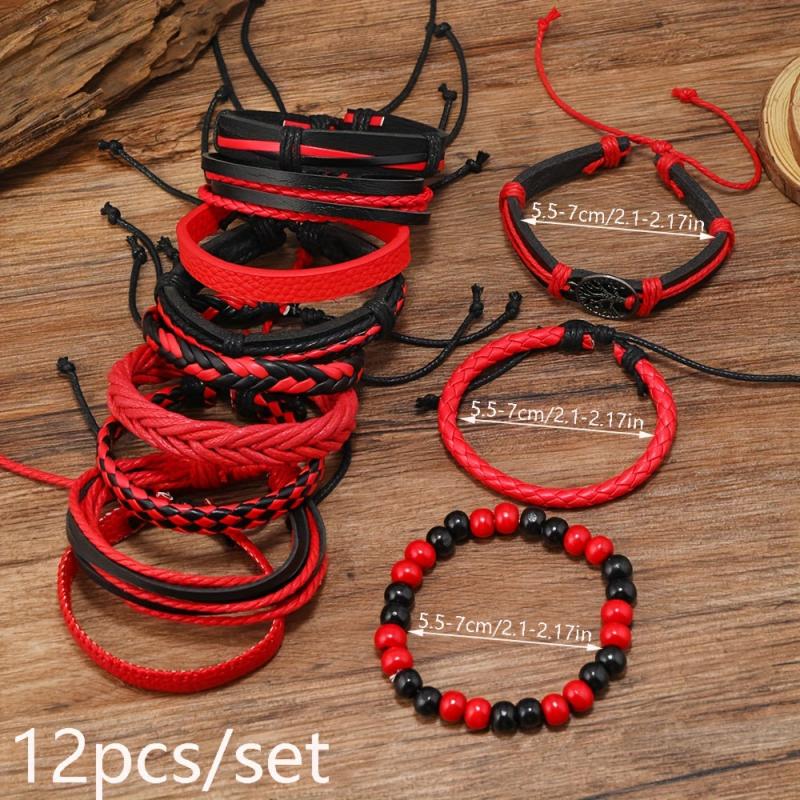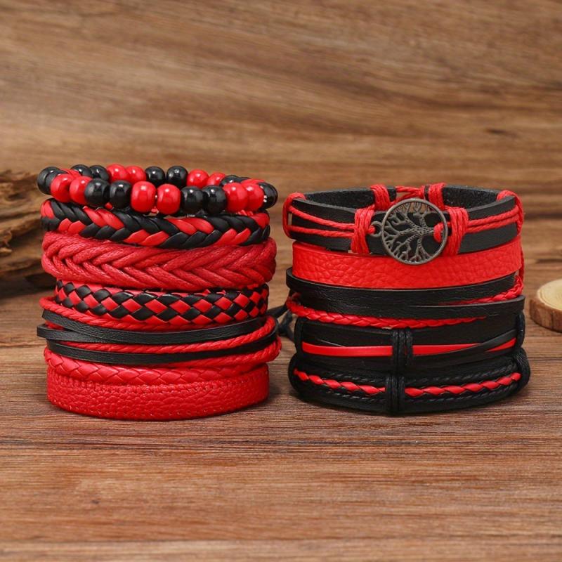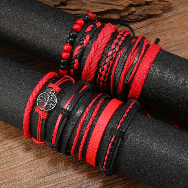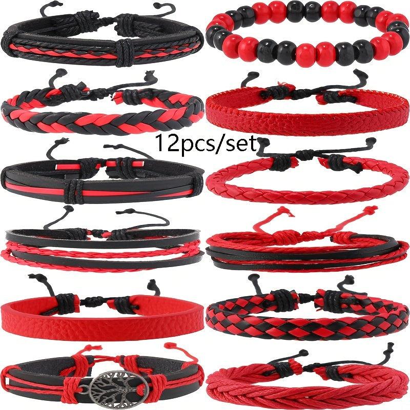 12pcs Niche DIY Set Life Tree & Peace Tree Braided Leather Bracelets