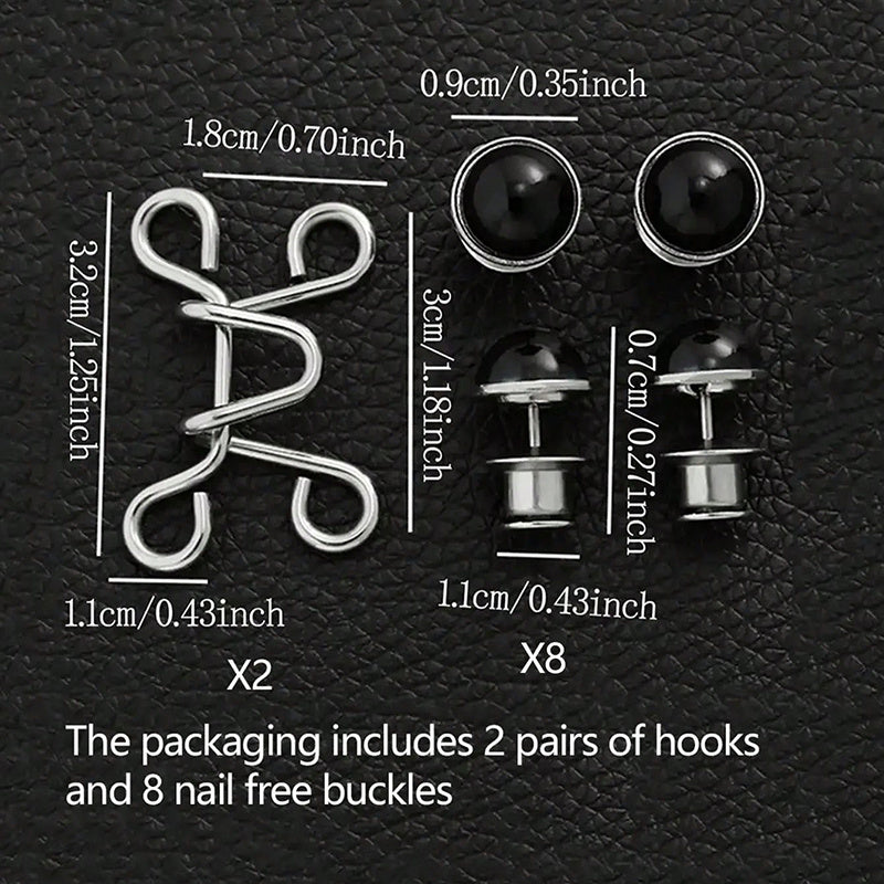 This set includes 12 adjustable no sew jeans buttons waist extenders that provide a durable and reusable solution for achieving the perfect fit on your denim and pants. Easily nail the clothing repair with these extenders.