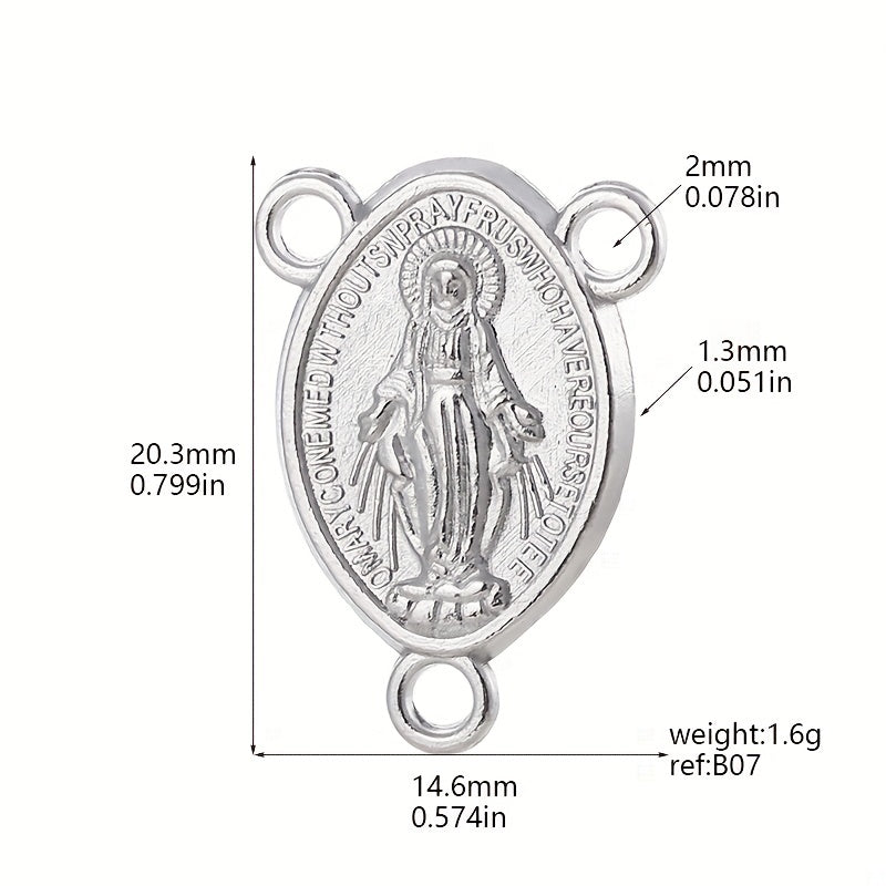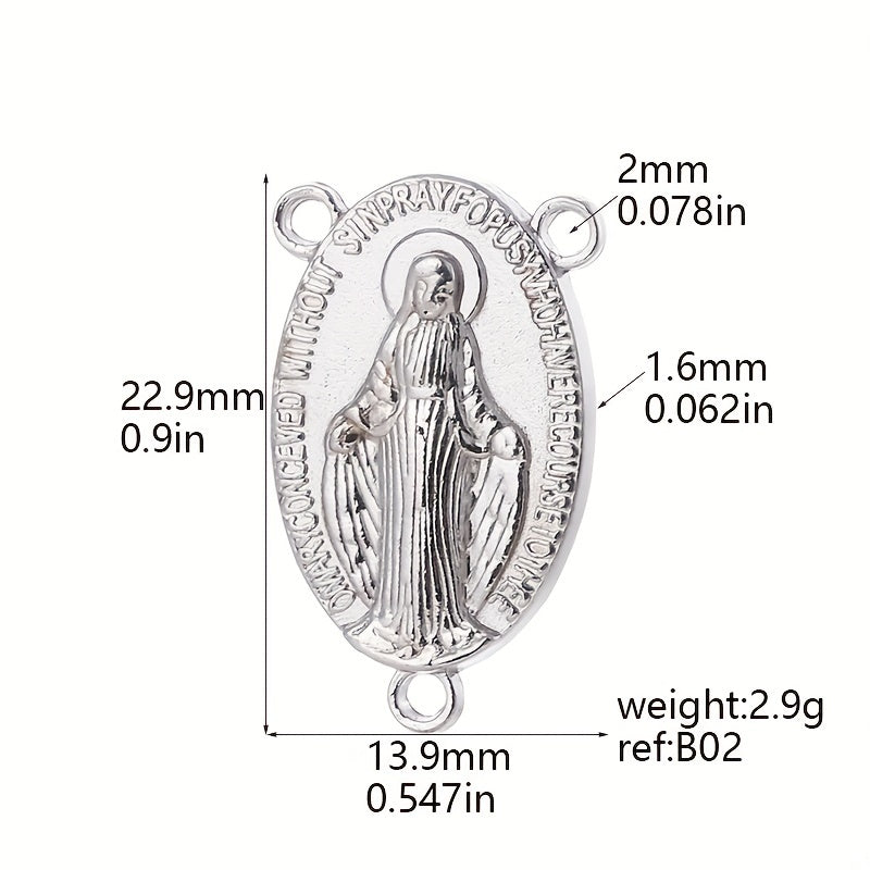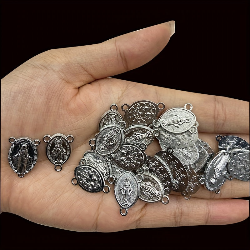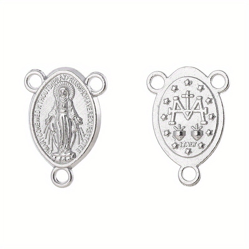 Get this pack of 12 silvery alloy jewelry connectors featuring Catholic religious figure patterns for creating beautiful rosary jewelry.