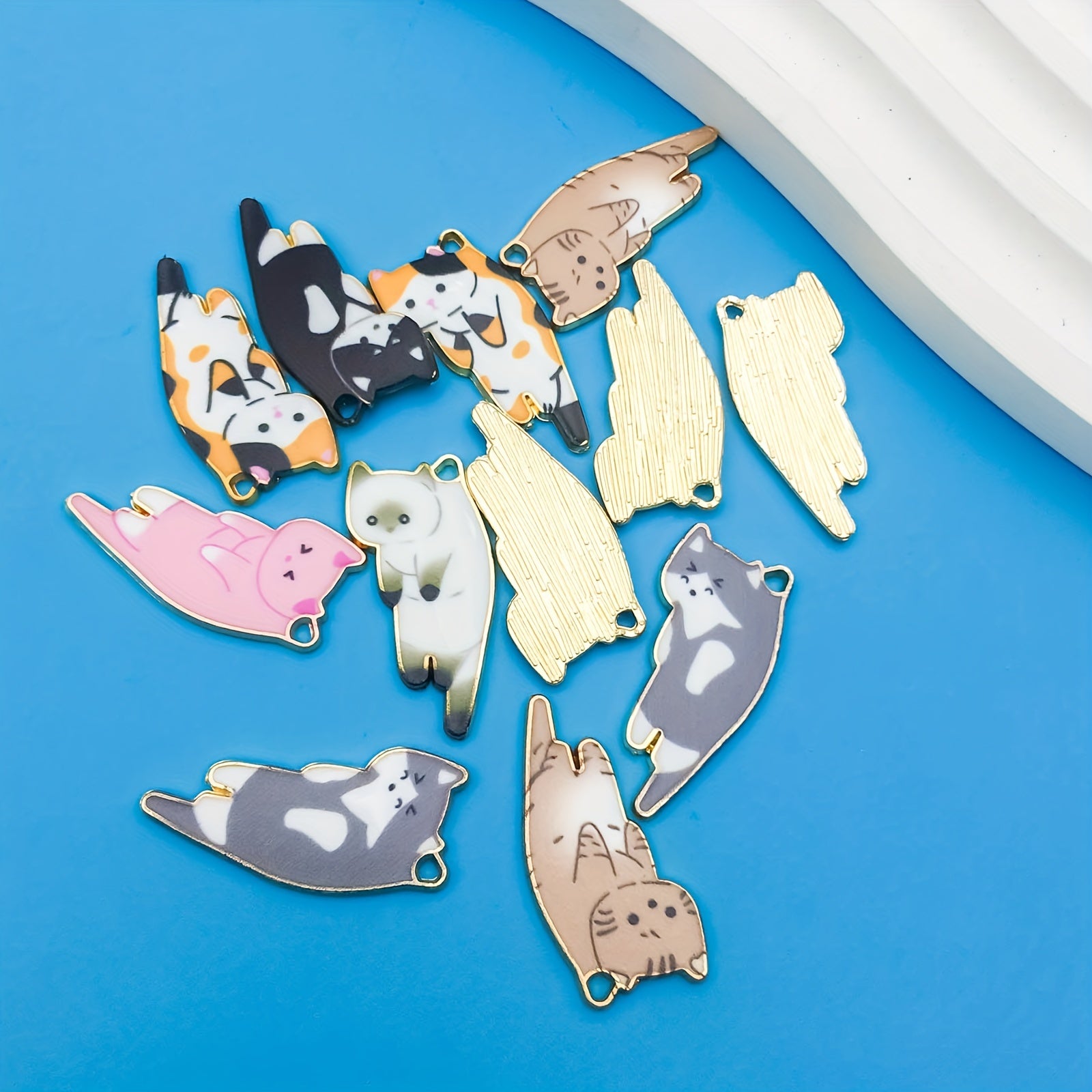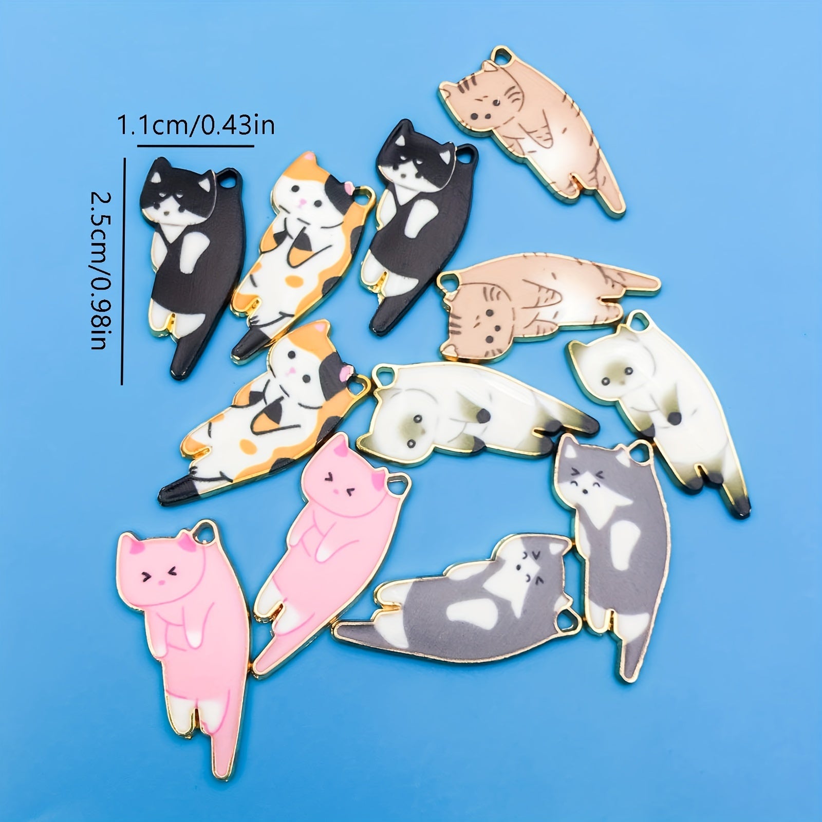 This set includes 12 randomly mixed alloy enamel charms with cat patterns, perfect for DIY jewelry making. Each charm measures 2.5cm x 1.0cm x 0.43inch.