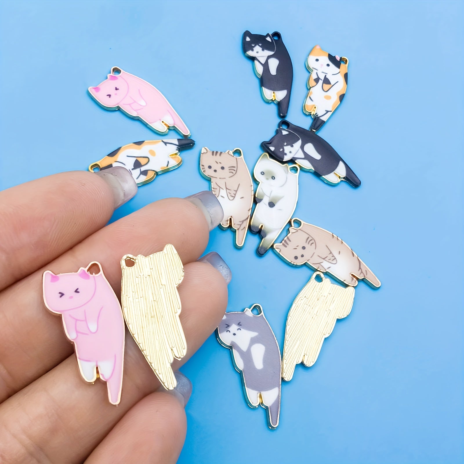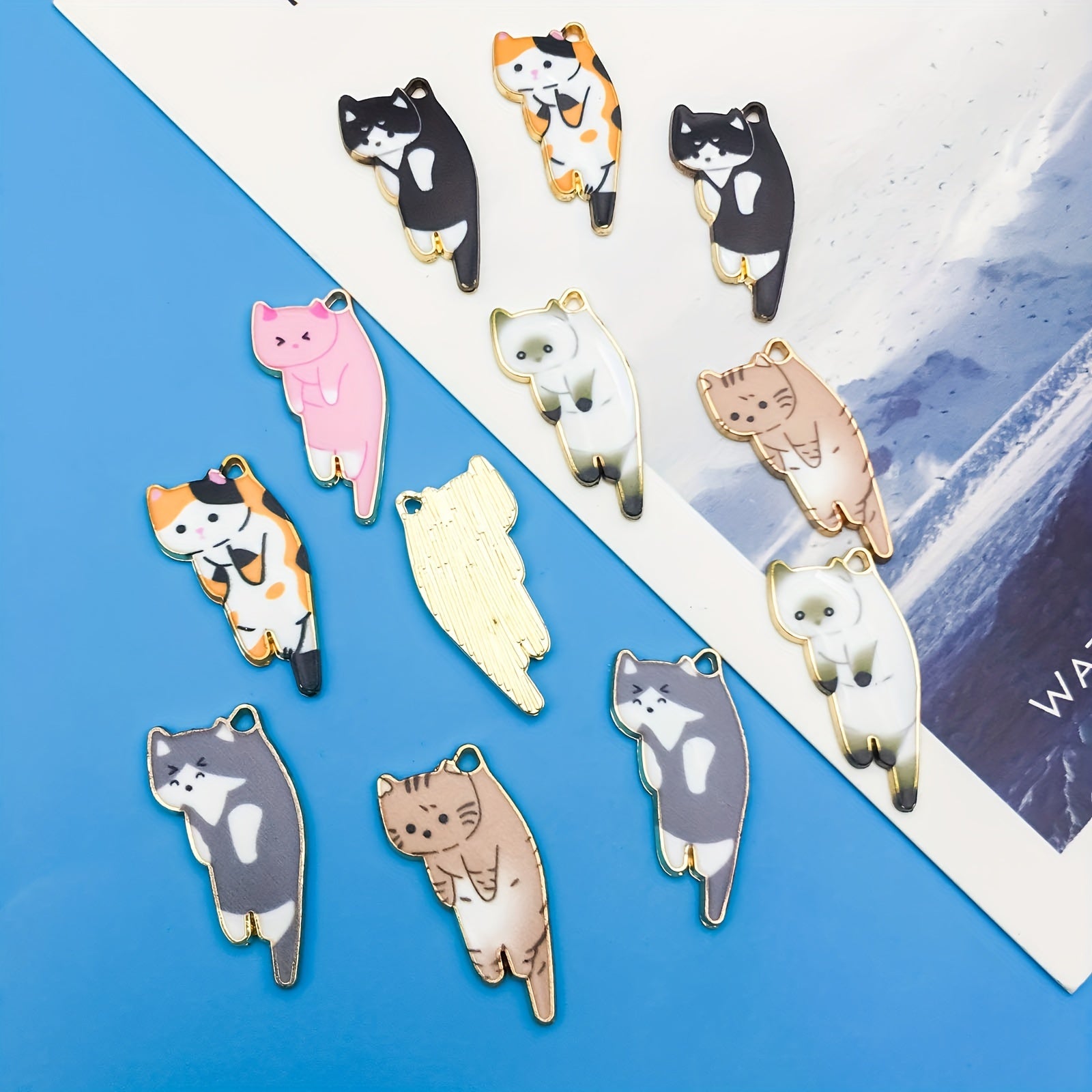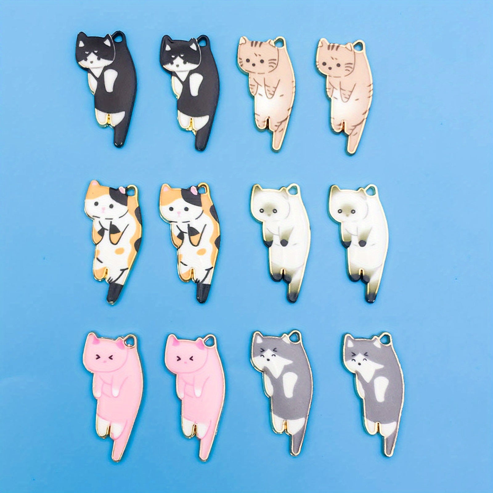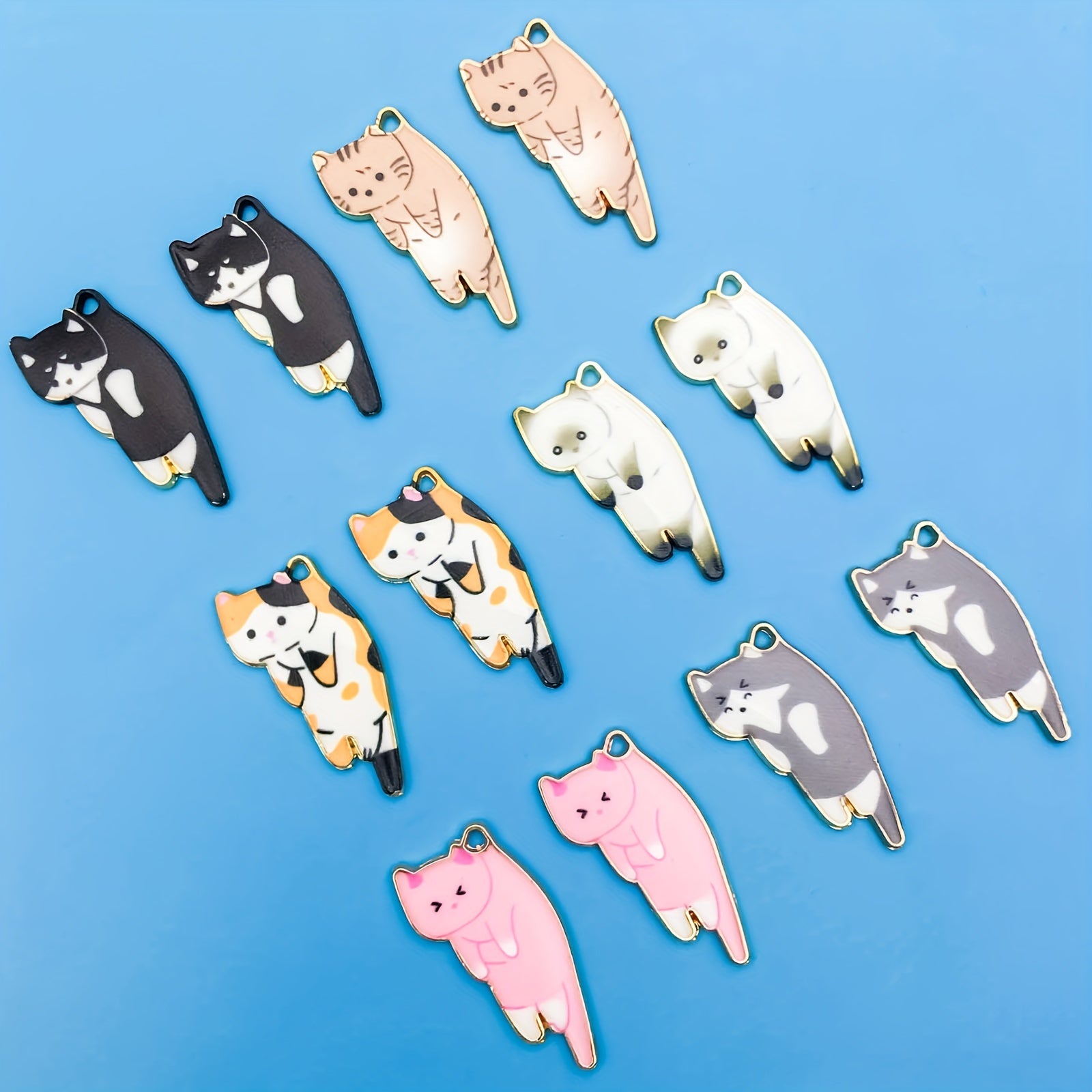 12pcs Set Mix Alloy Enamel Cat Charms Pendants for Jewelry Making