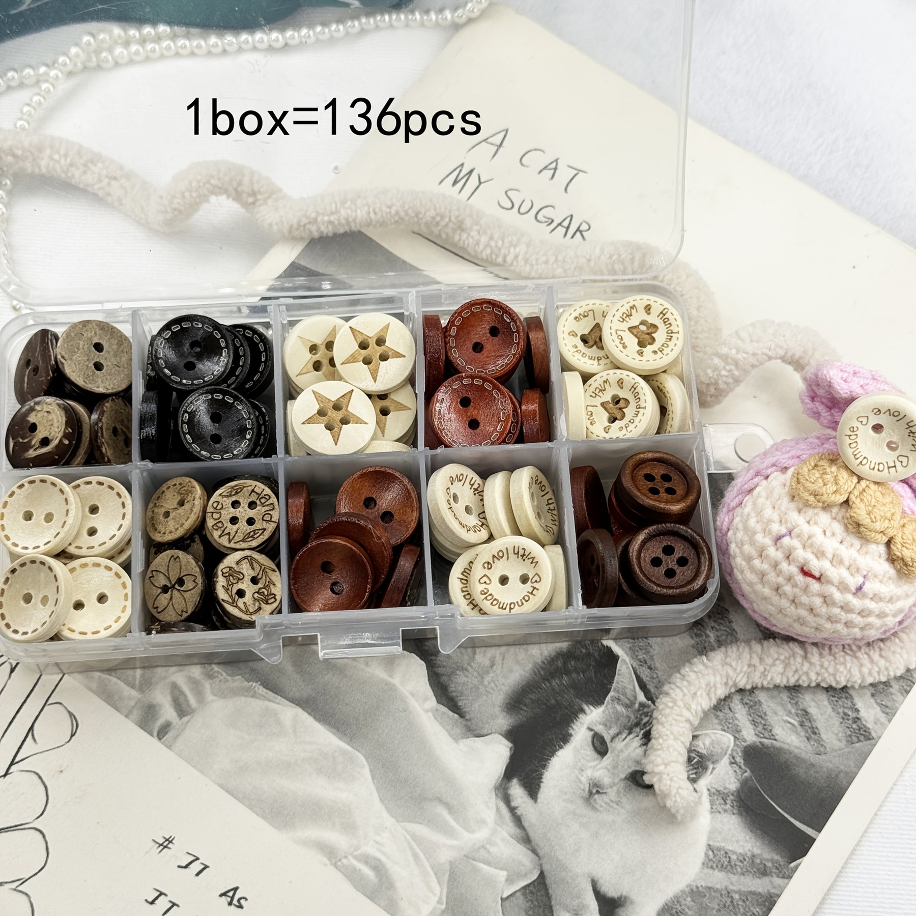 This box contains a variety of versatile pieces perfect for festive DIY decorations for Year and Valentine's celebrations. Let your creativity shine with this button box!