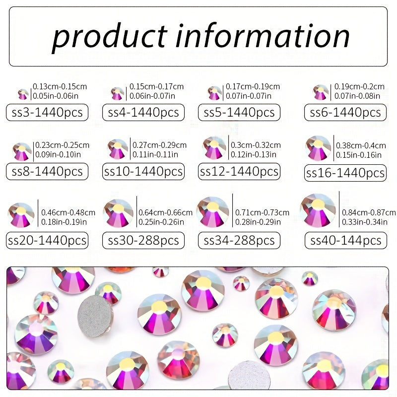 Enhance your nail art with this bag of 1440pcs round rhinestones. Made of high-quality glass, these crystals add a touch of elegance to your DIY nail designs.