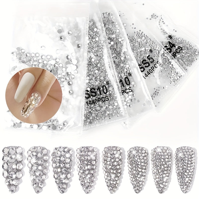 Enhance your nail art and jewelry designs with these 1440pcs transparent crystal glass flat bottom rhinestones. Perfect for decorating clothes, shoes, bags, and more.