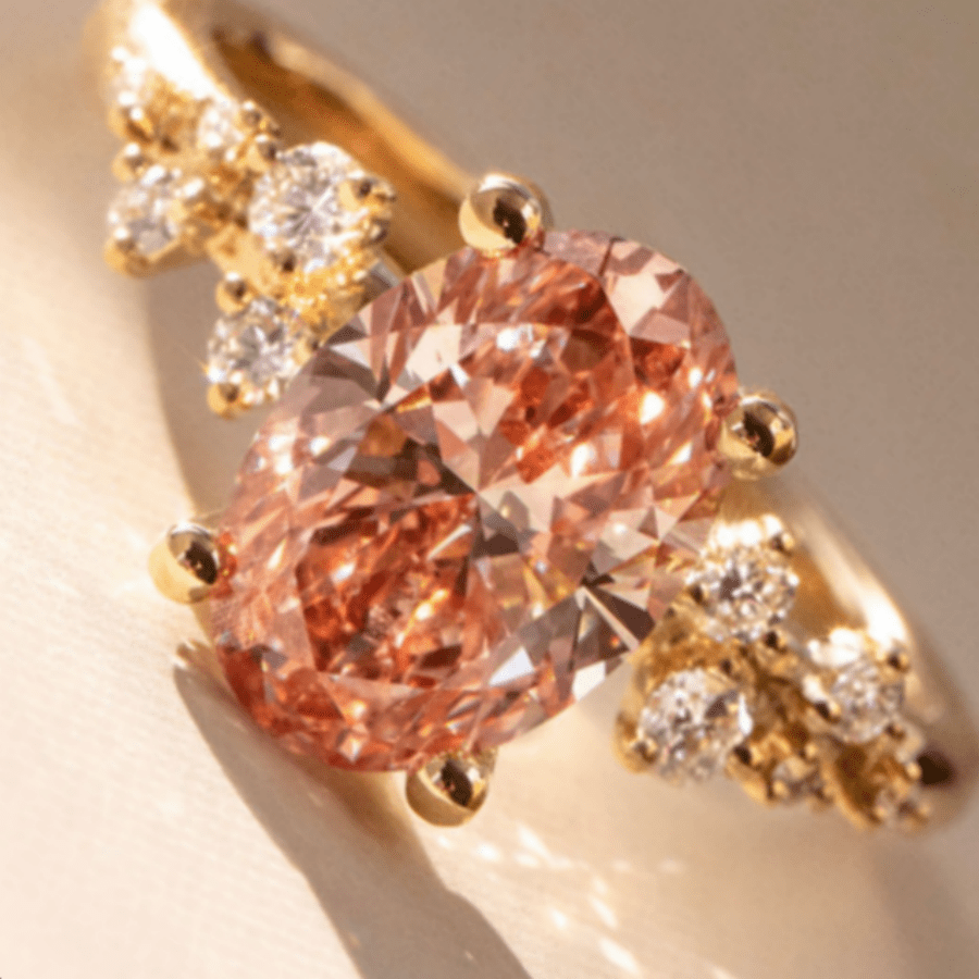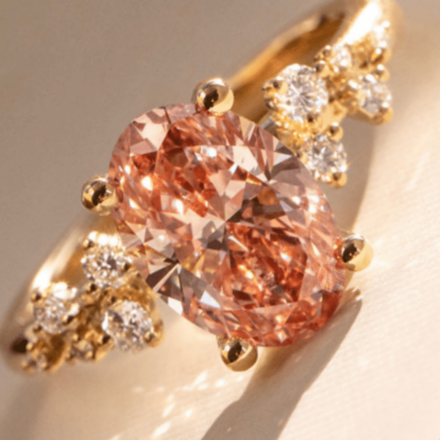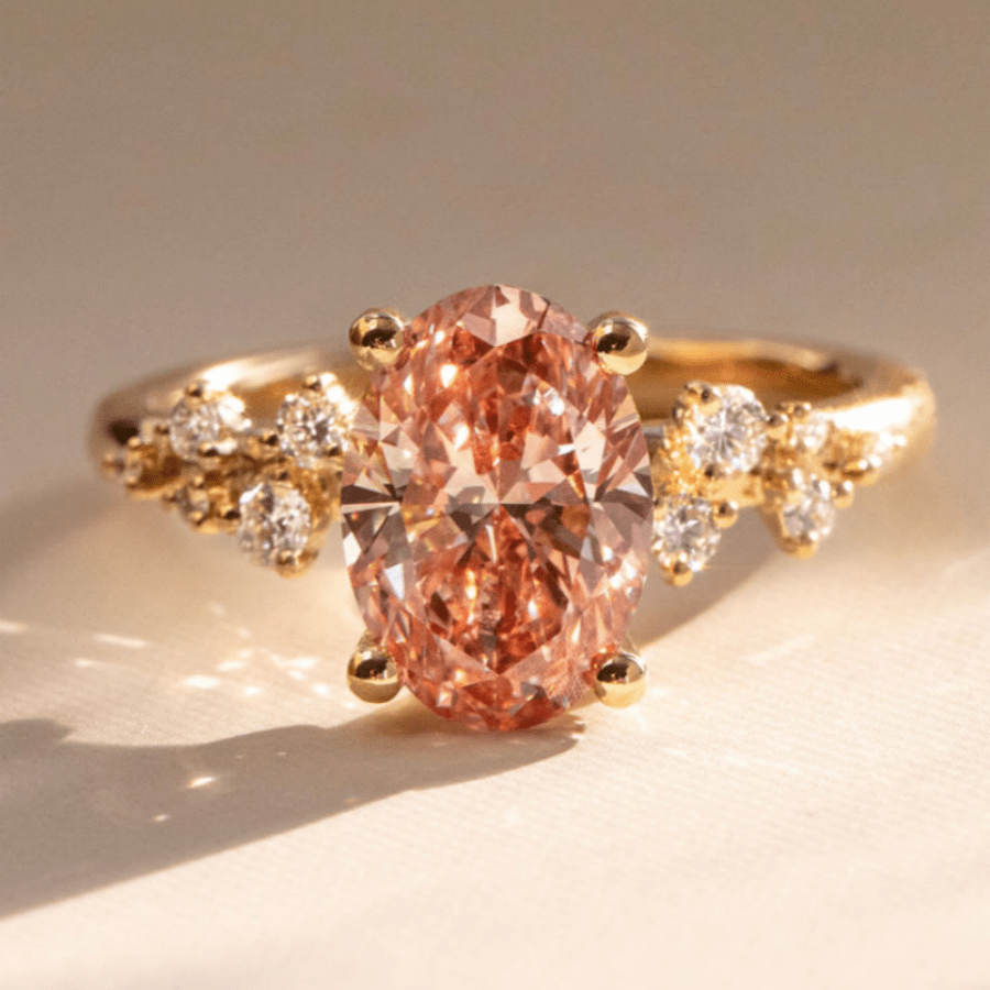 Oval pink center stone with accents, ideal for anniversaries, engagements, weddings, and more.