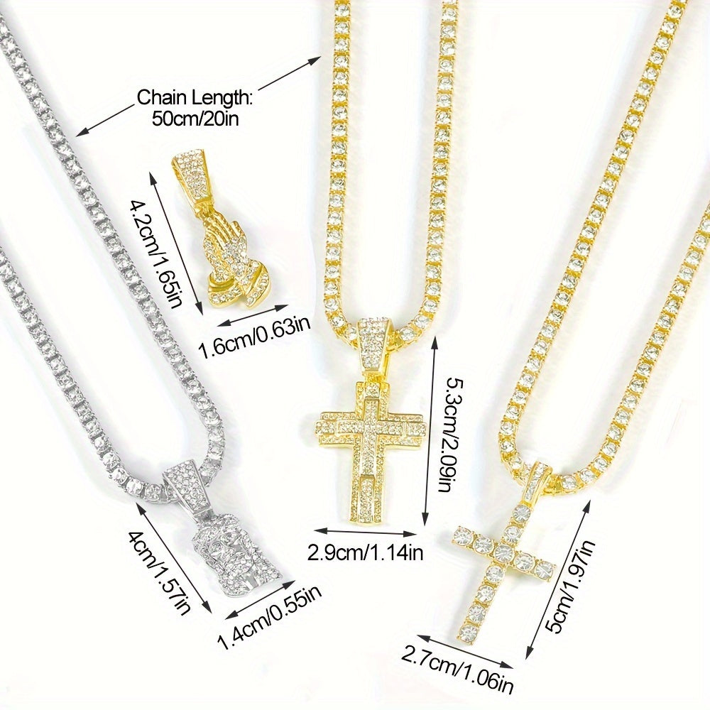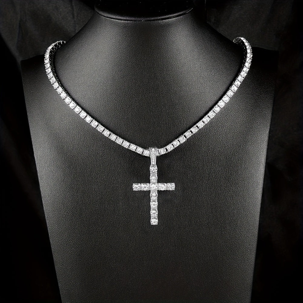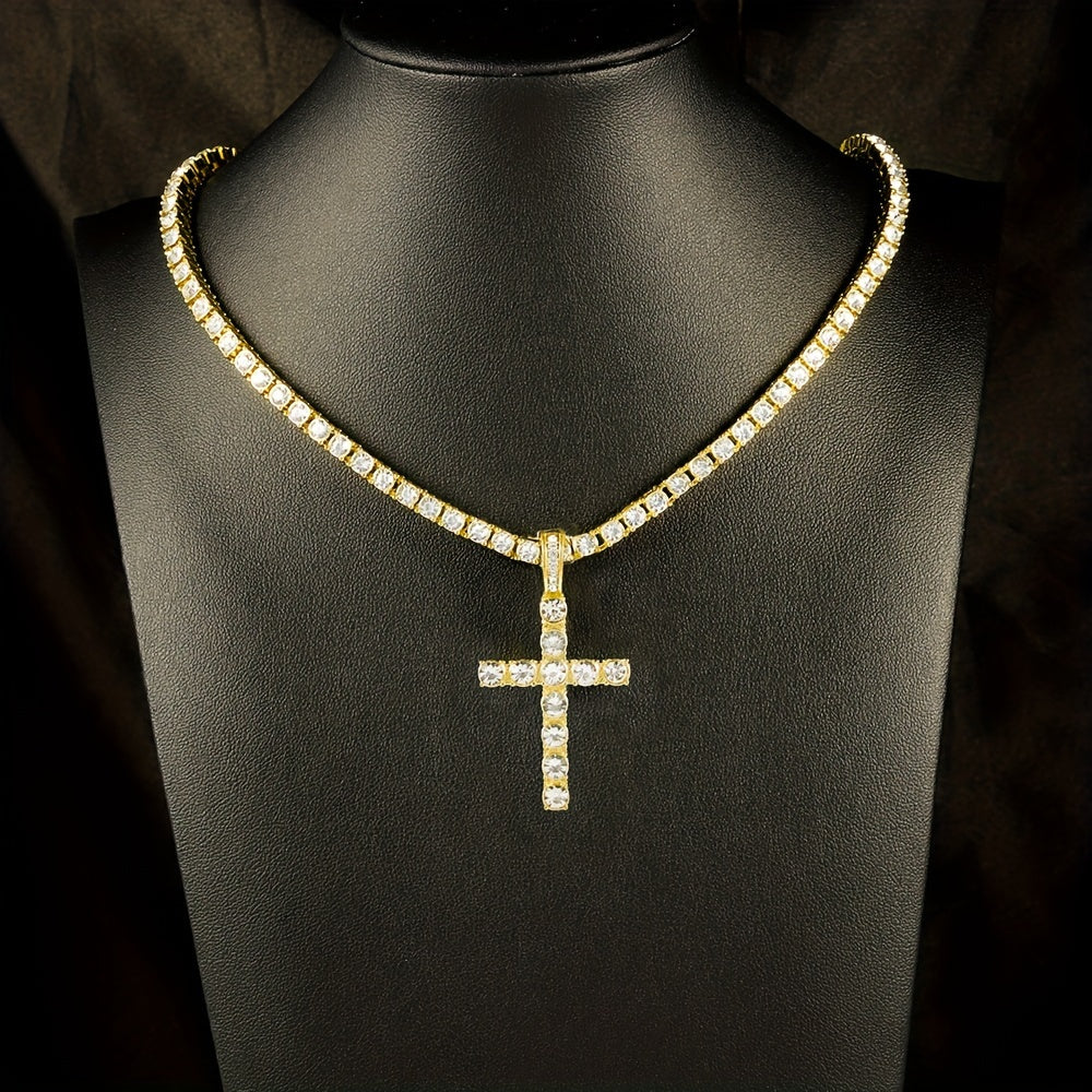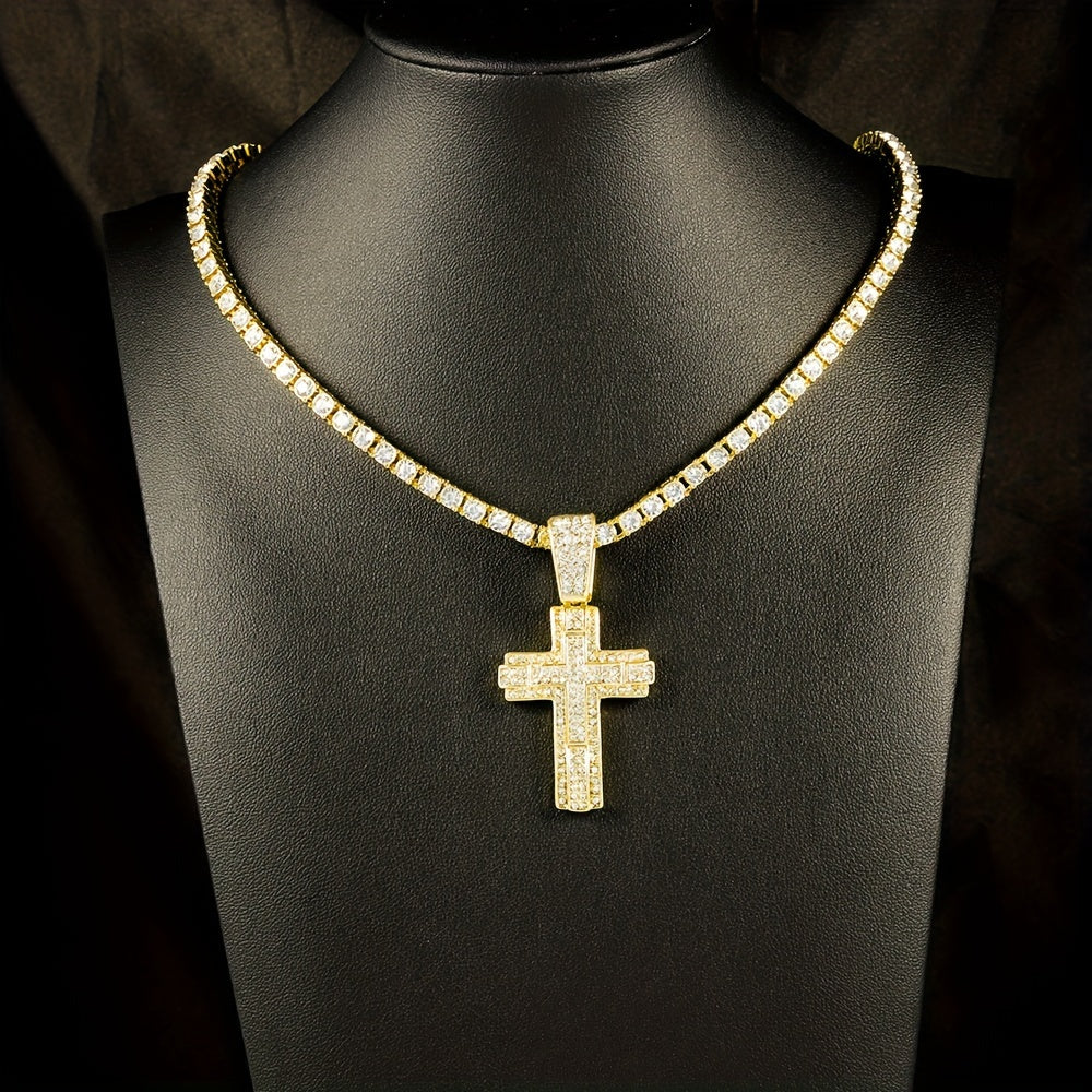 14K Plated Cross Pendant Necklace with Rhinestone Inlay