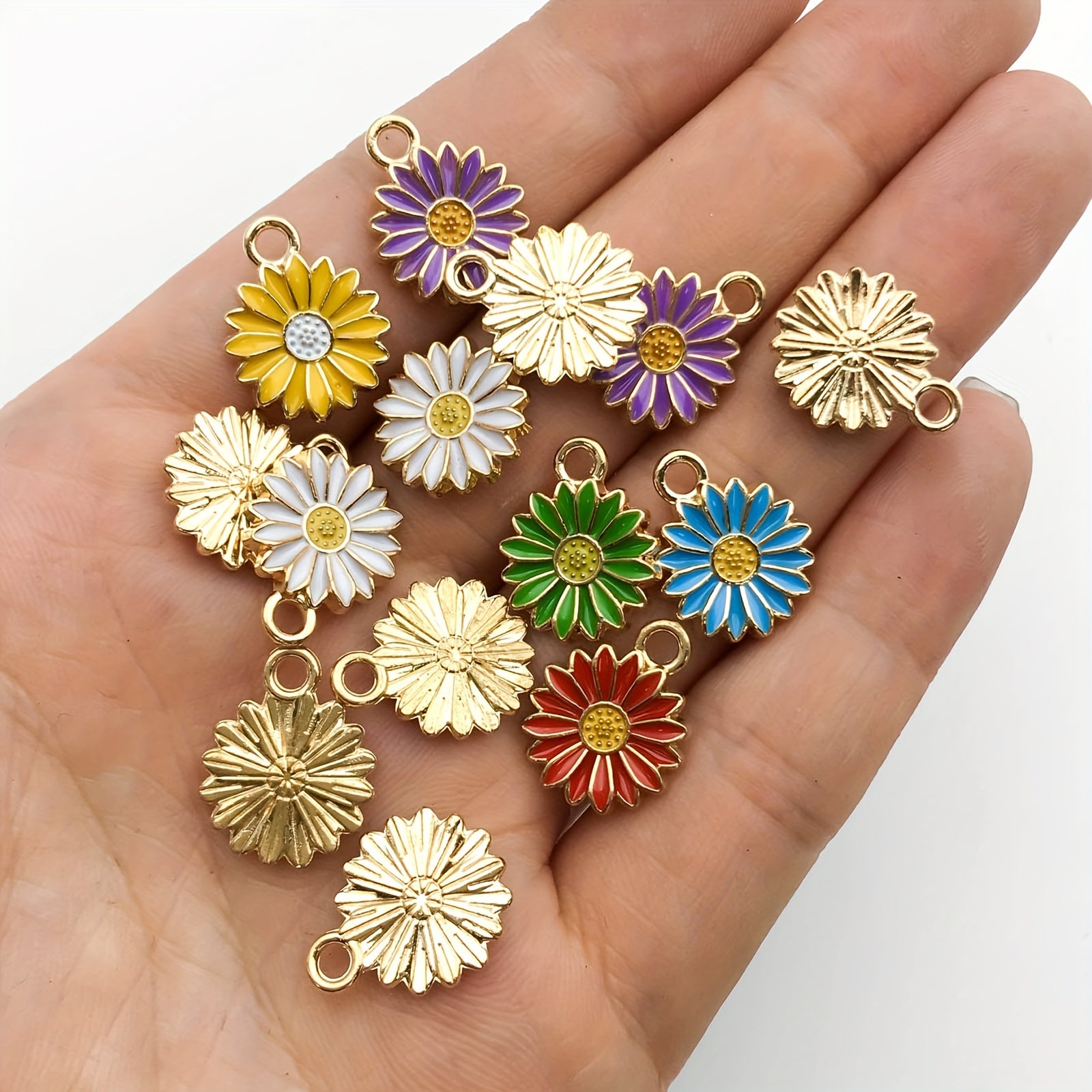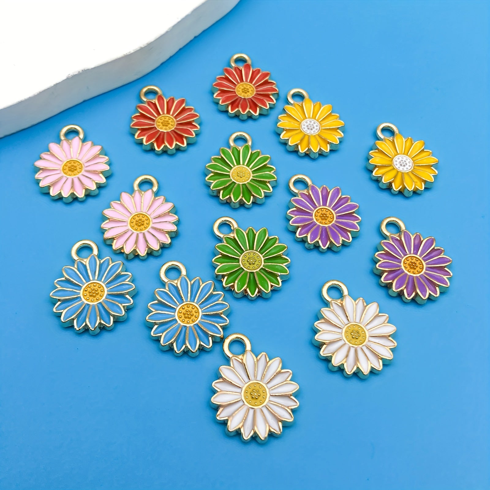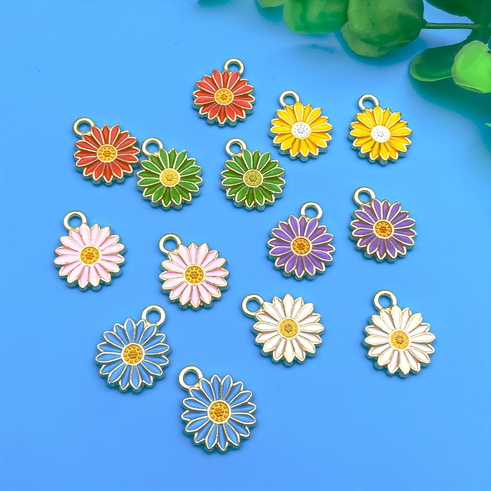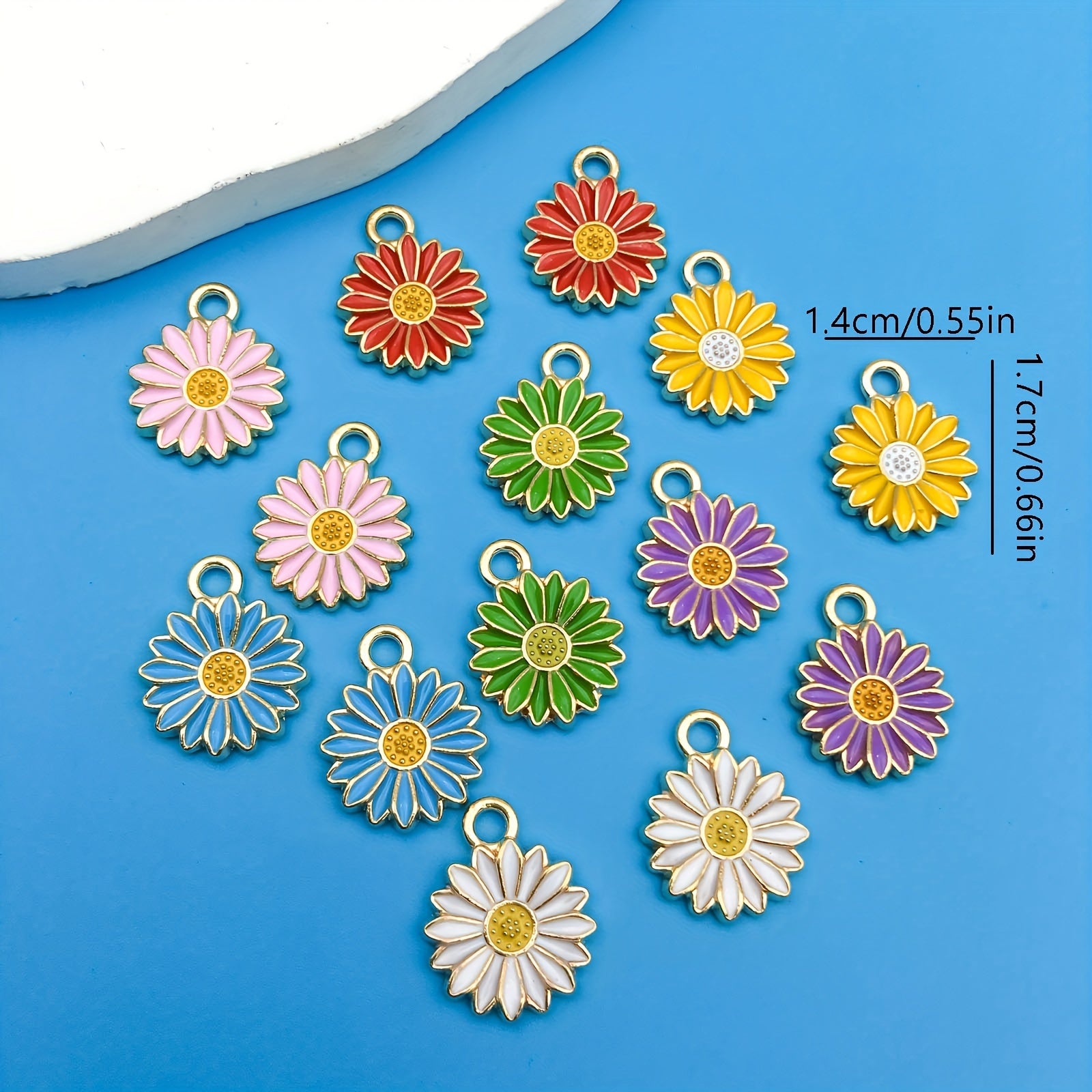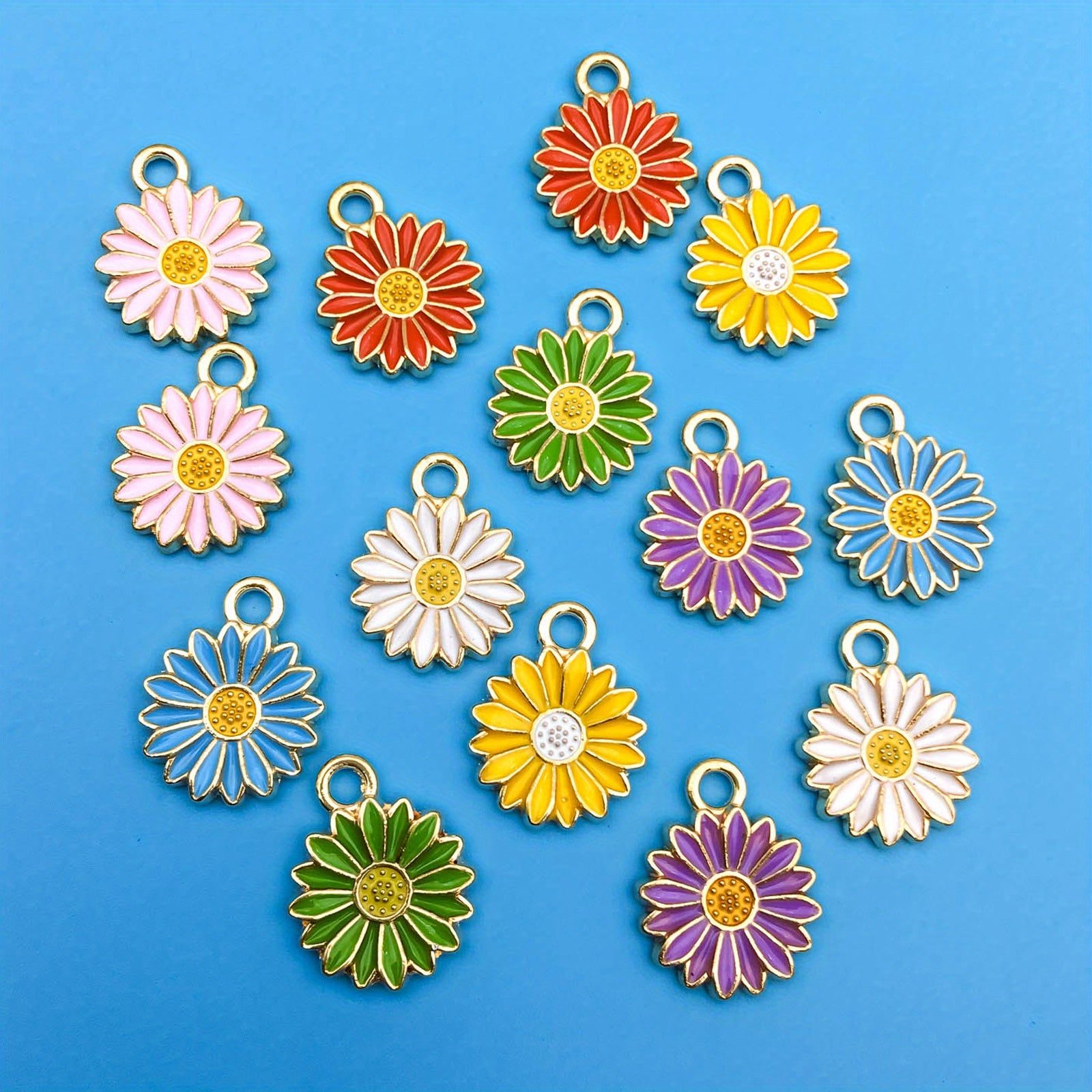 Add a pop of color to your jewelry with these 14pcs chrysanthemum shaped enamel charms. Perfect for creating unique necklaces, bracelets, and earrings.