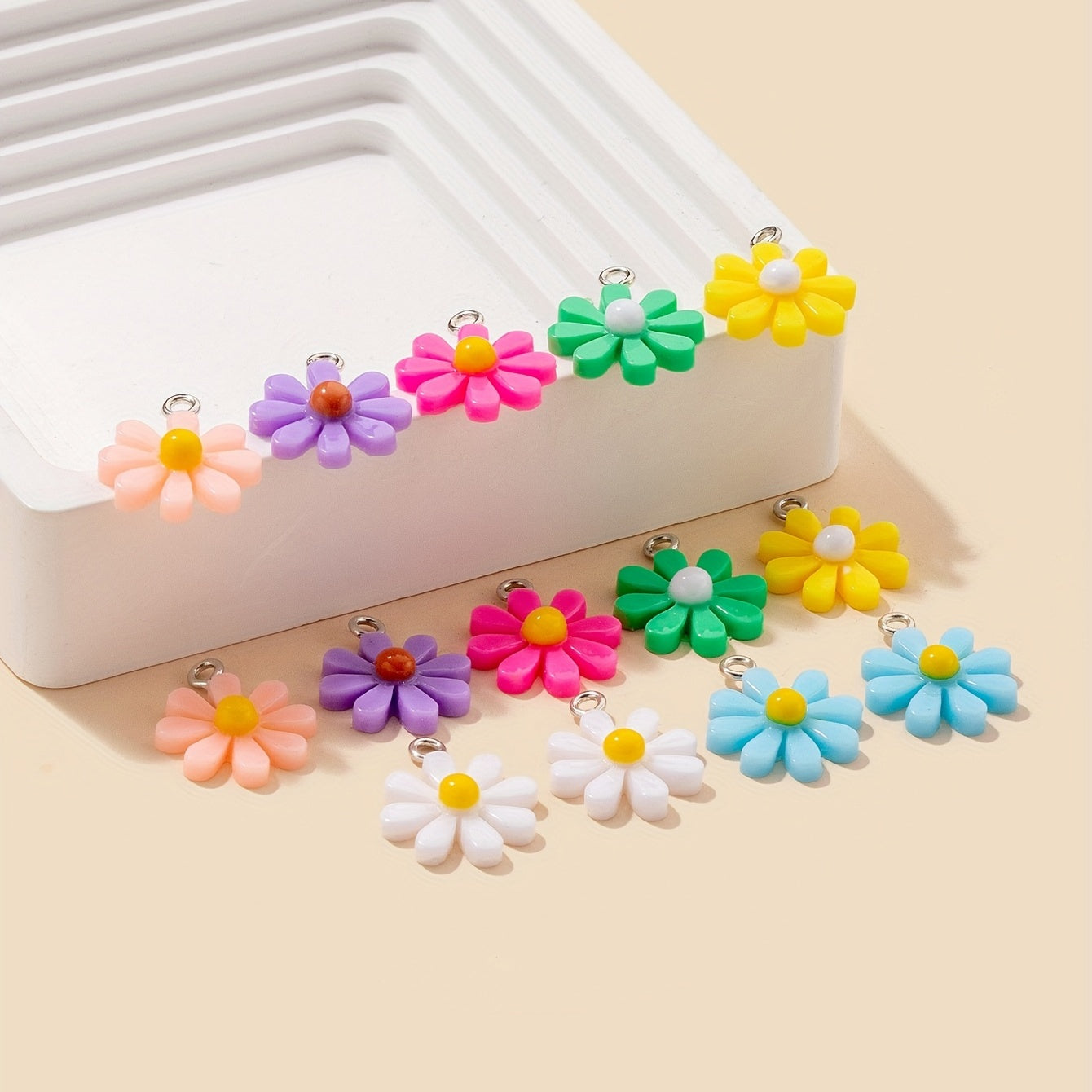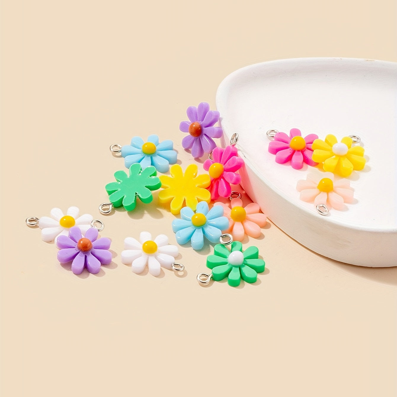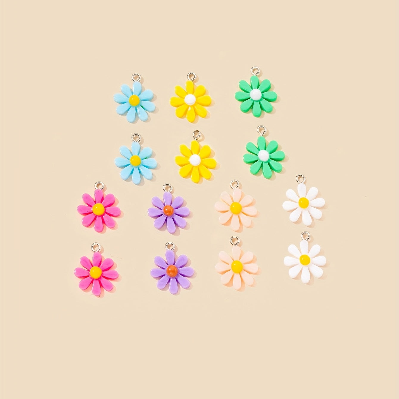 14pcs Colorful Daisy Sunflower Resin Pendants Jewelry DIY Accessories